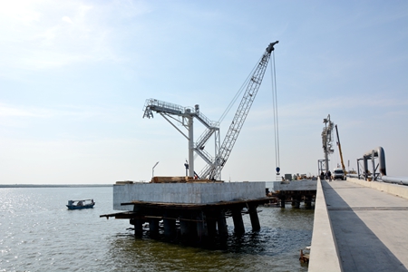 当地时间1月31日下午3点10分,当“亚星8号”搅拌船的布料杆收起的那一霎那,LNG水上墩台混凝土全部浇筑完毕,标志着卡西姆LNG码头项目主体工程顺利竣工。