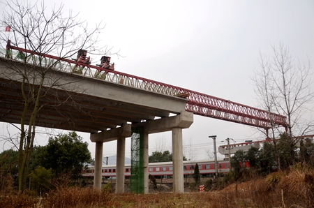 从1月9日开始,京广铁路每天中午12点45分至下午1点45分停运一小时,供武深四标跨梁施工,所有工作必须一步到位,不能有任何差池。因而架梁之前项目部联合铁路部门召开了跨铁路施工的专项方案,对每一个步骤每一个点都进行了讨论确认,和架桥队进行了三级技术交底,做好了充分的准备,确保万无一失。