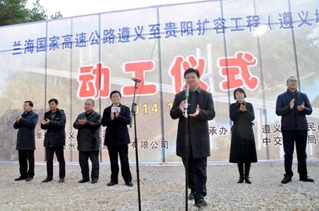 遵义市委常委、政法委书记、副市长王祖彬,市北环高速公路建设协调指挥部指挥长邹习书,市职业技术学院党委书记、市交通运输局局长李凌,市交建司董事长傅忠模等市直相关单位领导,中交二航局五分公司副总经理董正良、组织部长李竞等领导出席开工仪式,仪式由遵义市政府副秘书长赵振东主持。开工仪式上,遵义市委常委、政法委书记、副市长王祖彬宣布开工,随即,现场传来机器运转的轰鸣声,至此,遵贵扩容工程正式开工。