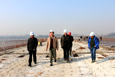方卫东一行来到项目部便直赴施工现场,从锦冶线开始,边查看边询问工程建设、征地协调、工程用料等相关情况。方卫东在步行通过正在桥面铺装的大冶项目控制性工程——兔儿墩大桥后,对大桥提前2个月完成T梁架设给予了充分肯定,同时也对项目的后续施工提出了高要求:力争打造精品,真正实现“做一个工程,树一座丰碑”。