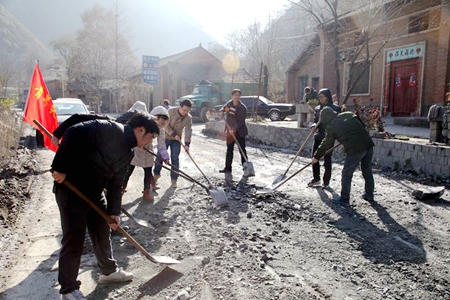 为更好的贯彻落实“锤钉兄弟”精神,项目部党工委在精神领悟的基础上,增加了身体力行环节来具体践行“锤钉兄弟”精神的内涵。项目部结合驻地附近的乡村公路年久失修,且来往的车流量大,路面早已是坑坑洼洼的实际情况,组织开展了一次路面维修公益活动。