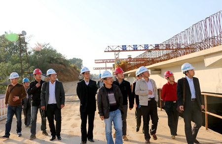 在考察兔儿墩大桥时,黄海欧边认真听取介绍边提出具体问题,并不时俯身查看,了解架梁的进度及安全控制情况、湿接缝的施工以及梁体之间的平滑过渡连接、混凝土表面平整密实程度等。他指出,桥体建设是大冶项目最复杂的工程,一定要与业主、监理单位和技术人员做好技术交底工作,在项目前期用以更高的标准要求自己,在工程质量安全上下足功夫,确保日后工程顺利验收。