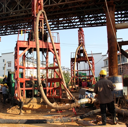 经过前期的桥墩桩位反复测定、机械设备安装调试、施工技术组织等准备,南岸引桥首根钻孔桩得以顺利开钻,据了解,2日当天共完成了6根钻孔桩造浆开孔工作。