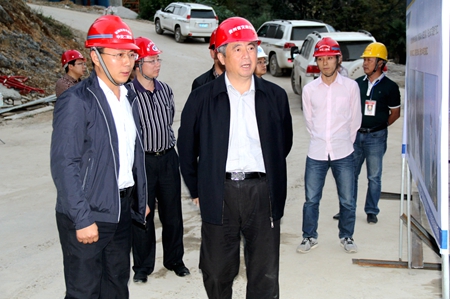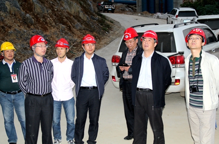 10月21日下午,贵州省交通厅厅长陈志刚、贵州省质监局局长许湘华、贵州高速开发总公司副总经理汪金育、项目办主任周平等一行视察了毕都高速T17标项目。