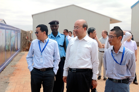 刘大使在参观了二航局历年工程成果展后,对二航局的实力表示了充分肯定,并希望项目部以“一份信念,百倍努力”干好项目。