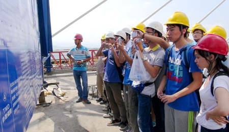 近日,湖南汝郴高速赤石特大桥项目部迎来湖南大学、长沙理工大学百余师生参观学习。 两校师生来到赤石特大桥施工现场,看到一线工人们正为大桥早日合龙而紧张有序的作业时,不由发出阵阵赞叹。在随后的欢迎会上,项目副总工用幻灯片辅助演讲的方式,向师生们介绍了赤石特大桥的工程概况和施工情况,并着重讲解了大桥的承台施工与塔柱施工,师生们纷纷表示受益良多。 参观学习期间,长沙理工大学生还与项目青年员工进行了篮球友谊赛,在各自展现顽强拼搏、团结协作精神的同时,进一步促进了双方友谊。
