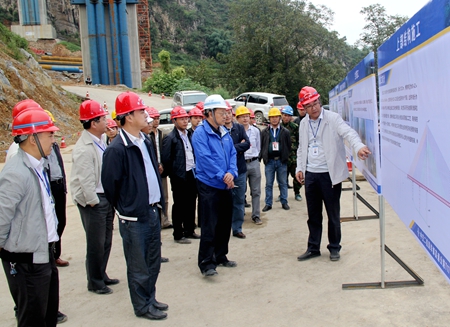 9月24日,交通部检查组一行,在公司安监部副总经理曲平、分公司安全总监夏佑平的陪同下,来到毕都高速项目检查指导工作。 检查组一行来到正在建设的北盘江特大桥主塔处,在听取了项目经理对工程建设情况的汇报后,乘坐电梯到达主塔右幅,查看现场施工情况,详细了解相关施工工艺,并对主塔建设表示充分肯定。 在随后的会议上,检查组听取了项目总工对工程生产建设的总体汇报。检查组对二航铁军顽强拼搏、艰苦奋斗的精神风貌表示赞赏,并希望二航局能一如既往做好贵州项目建设工作,铸造精品工程,造福一方社会。