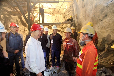 孙永福一行冒雨来到正在紧张建设的清凉山隧道现场,视察工程建设情况,在详细了解了工程施工进展后,孙永福指出,西成客专项目是国家重点建设项目,也是首条穿越秦岭山脉群的高速铁路,西成高铁的建成,将形成华北至西南铁路新通道,对缓解铁路运输紧张状况,完善路网布局,促进中西部地区经济、社会协调发展,均具有十分重要的意义,希望项目部以强烈的责任感与使命感,高标准、严要求完成该项目建设工作。