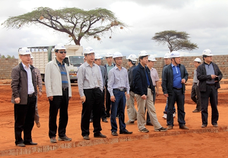 蒙内铁路项目大临建设及施工准备工作已进入关键时期,为确保10月1日项目全面开工,8月22日,由蒙内铁路项目总经理部总经理孙立强、副总经理安爱军及各部门负责人组成的检查组来到蒙内铁路四标项目部检查指导工作。
