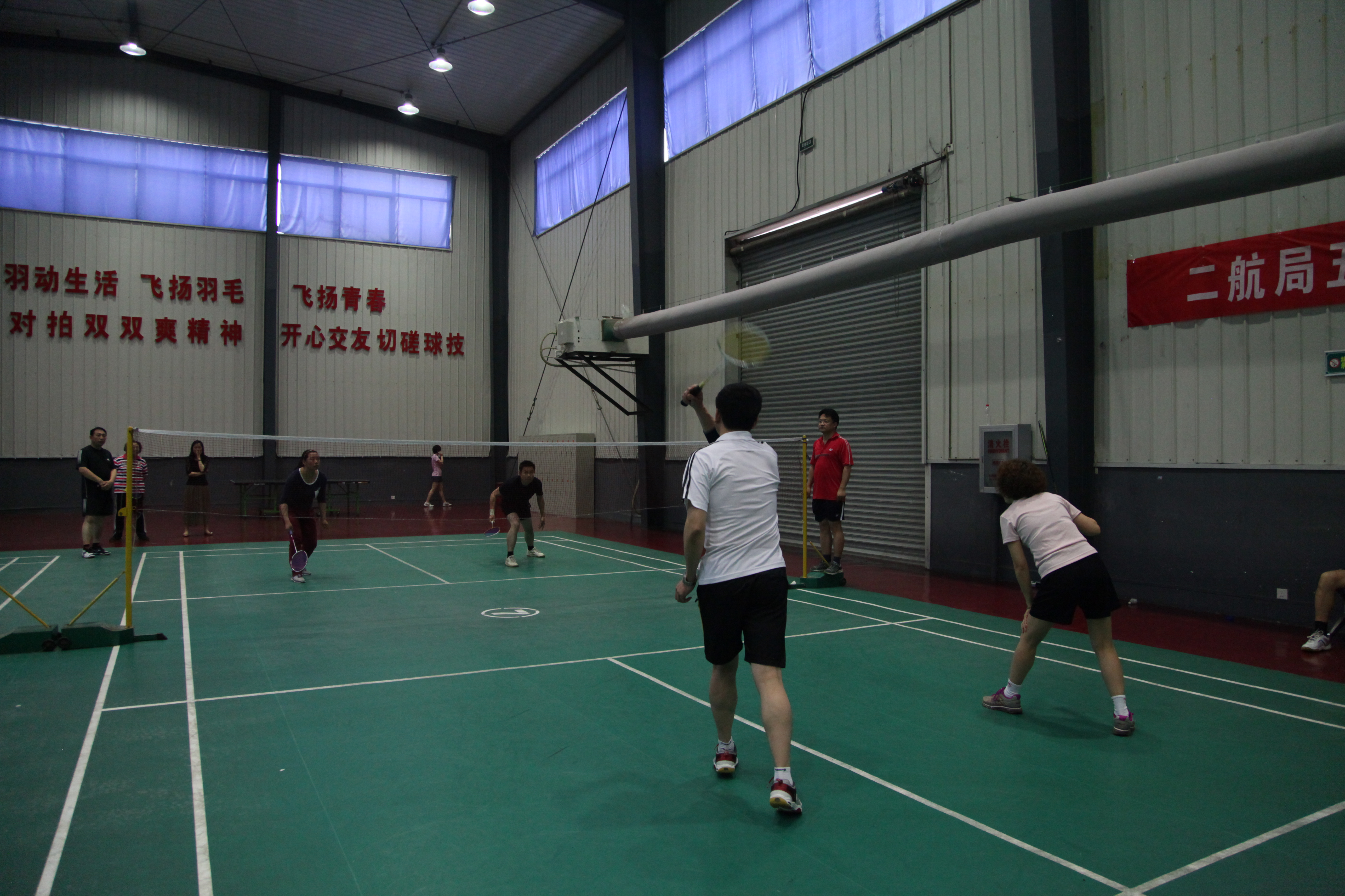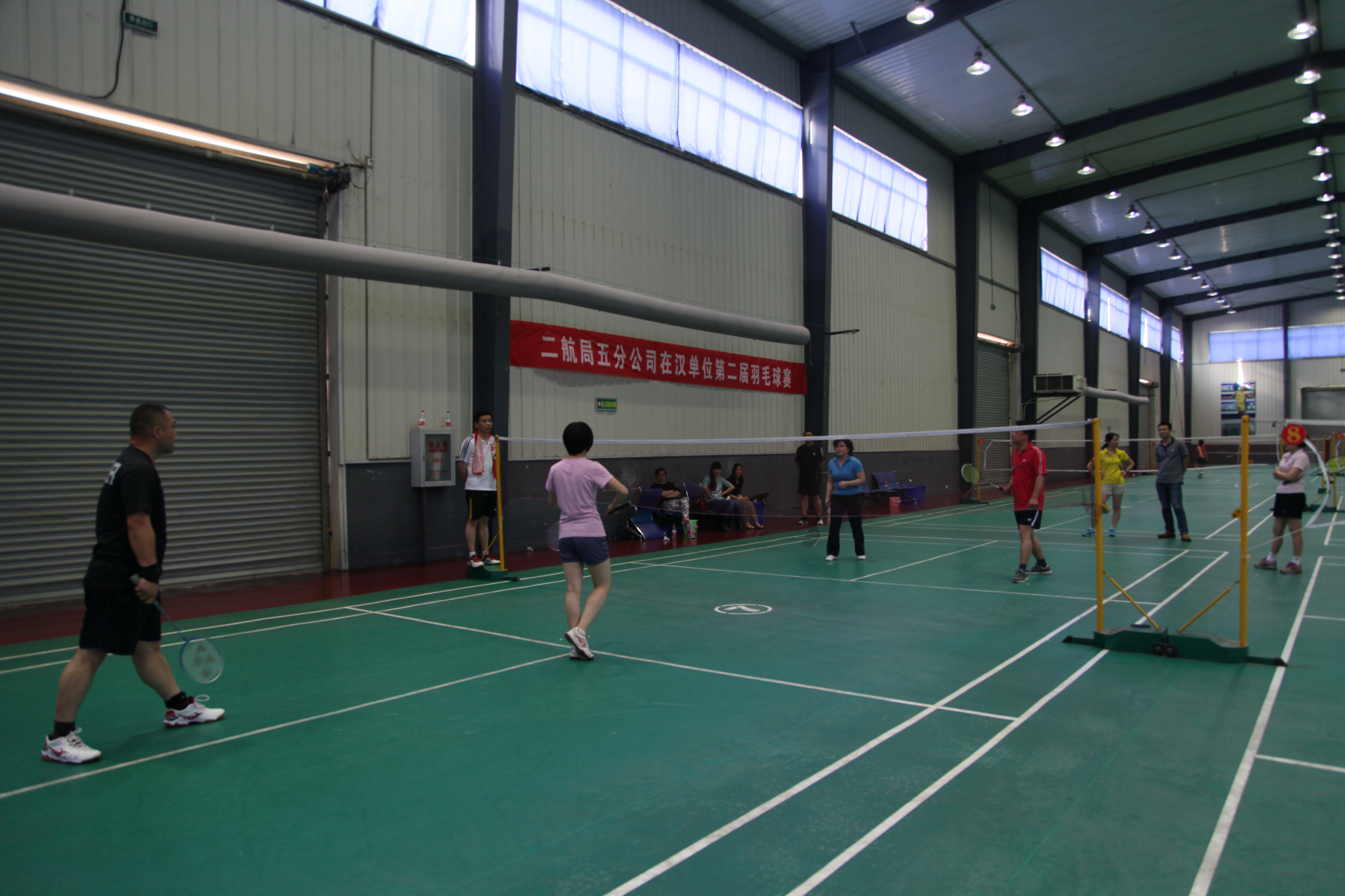 选手合影 比赛现场 夫妻档对决 5月初,分公司工会举办了第二届在汉单位羽毛球赛。此次比赛于5月6日-9日举行,采取混双淘汰赛制,一共32对计64名选手参加了比赛。最终混双比赛的桂冠由分公司财务部向蕾、张洋斩获。
