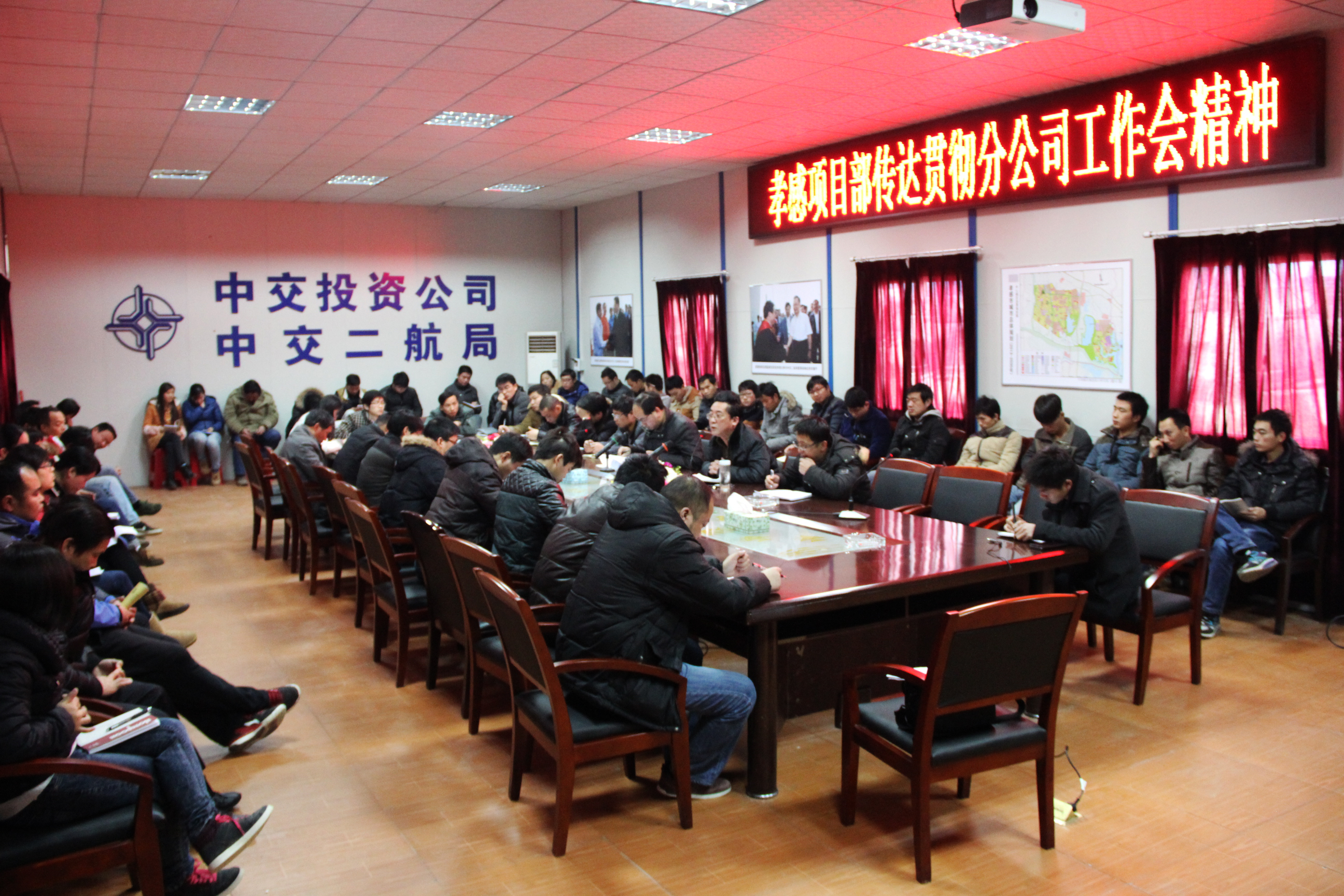 分公司工作会刚刚结束,孝感项目部参加会议领导立即赶回项目部,组织项目部全体员工70余人在项目部会议室召开职工大会,及时传达学习分公司工作会议精神。