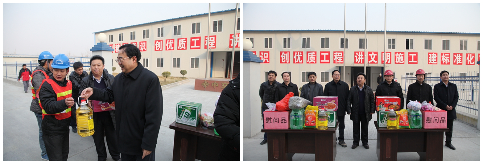 1月26日,公司董事长蒋成双到五分公司西成客专项目开展慰问活动,并陪同西成公司董事长、总经理晋志毅一行到施工一线察看施工情况,向现场工人送新春祝福。