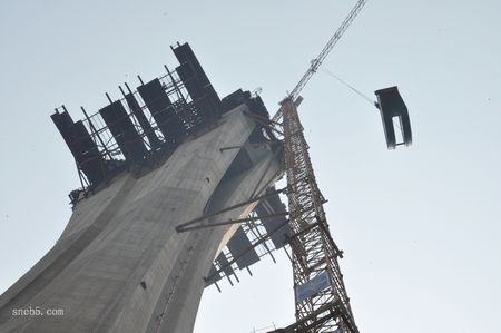 该挂篮的正式吊装,标志着大桥建设已经进入现浇混凝土箱梁施工阶段。为2013年下半年索塔封顶,2014年主梁合拢打下了坚实的基础。