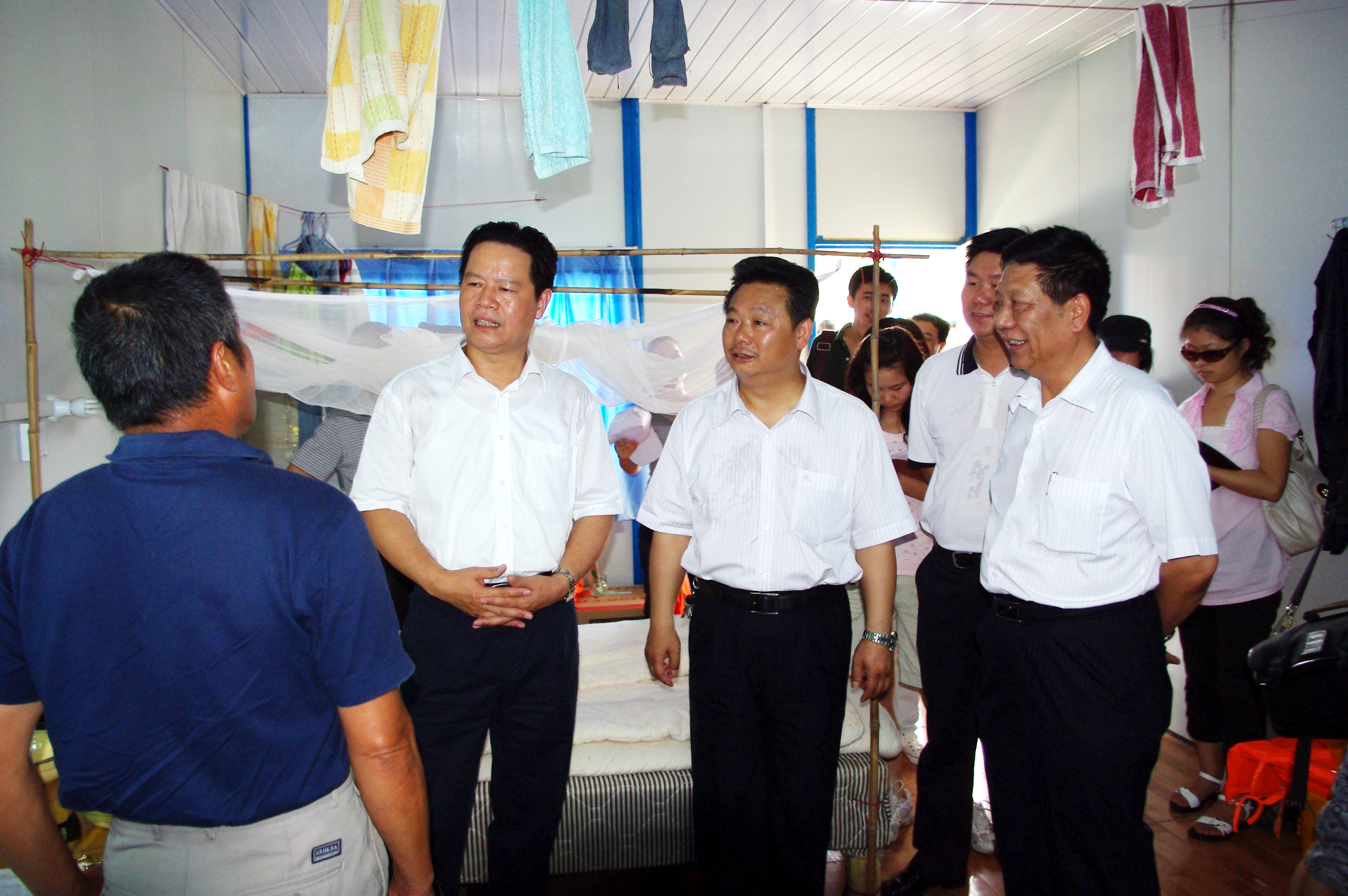 在公司党委会书记汤永生、公司纪委书记兼工会主席蒋成双陪同下,张昌尔主席一行顶着烈日来到施工现场,将价值3万余元的毛巾、香皂、仁丹、十滴水、藿香正气液、花露水以及1000斤绿豆、500斤白糖等防暑降温用品送到正在工程建设一线战高温、斗酷暑的农民工手中,同时还为项目部送来了几百本各类书籍。当农民工们接过张昌尔主席送来的“清凉大礼包”时,激动不已,纷纷表示,今后将更加努力地工作,确保工程按时保质完成。张昌尔主席和省、市总工会的领导察看了工地建设的进展进度,关切询问了企业防暑降温工作落实情况,并深入农民工宿舍、食堂查看了农民工的生活环境。当看到昔日脏乱不堪的工棚如今被统一建造并配备热水器、淋浴器的农民工公寓取代时,他们连声称赞项目部为农民工营造了一个干净整洁的生活环境。随行的湖北省总工会健康帮扶联盟的医务人员还为工地的农民工进行了健康体检和咨询。