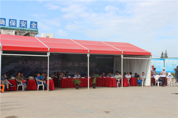 9月14日下午,杭州湾大桥北接线二期建设工程项目连续梁挂篮施工现场交流会在杭州湾大桥北接线二期工程TJ04标段517号主墩施工现场召开。杭州湾大桥北接线二期工程建设指挥部,市质监站、监理方代表,项目全线六个标段项目经理、总工及工程部长、安全、质量负责人,连续梁施工班组负责人共计80余人参会。