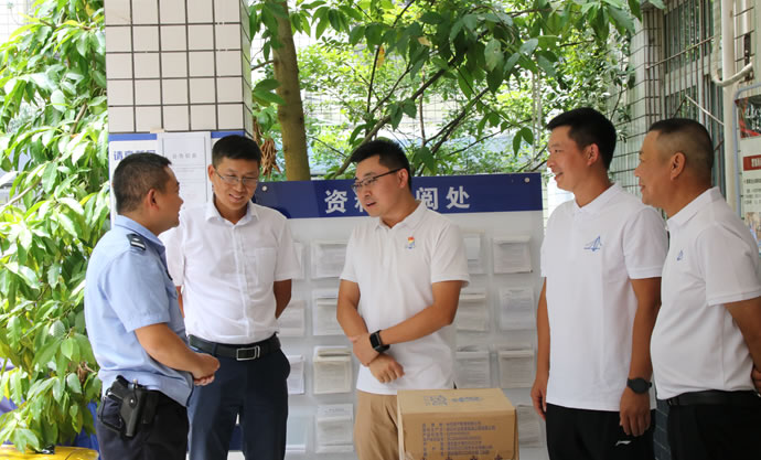 下午,项目党支部书记刘颖带队首先来到简阳市石钟镇派出所走访慰问全体民警,为他们送上西瓜、饮品,对民警们战高温、斗酷暑的奉献精神表示敬佩,对大家为辖区治安稳定、金简仁沱江大桥建设稳步实施付出的努力表达感谢。
