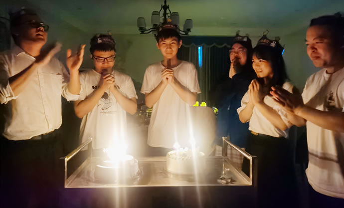 “好久没收到自己的生日礼物了,里面还有一张项目负责人和书记特地为我们写的祝福和亲手签名生日贺卡,每个人的祝福语都不一样,让我感受到项目部的温暖……”项目员工张林在朋友圈里这样写道。这次集体生日会,项目工会特意策划了集体生日会方案,还给每个“寿星”精心准备了保温杯和精致巧克力小礼品专属礼物。当天的项目食堂里,五彩的气球、丰盛的美味生日餐和点心水果,各种贴心小礼物,让现场变得十分温馨。大家围坐在一起,依次为同事戴上生日帽,吹着生日蛋糕的“寿星”们萌态可掬,让现场充满欢乐的氛围。