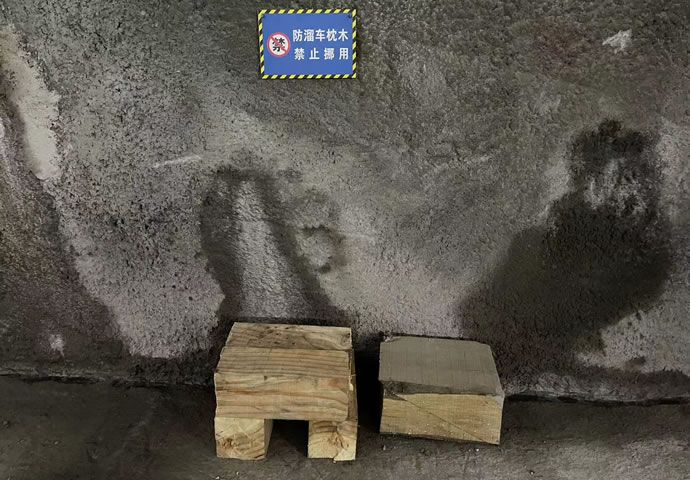 施工通道埋深最深达60多米,地下水资源丰富,常有地下水渗出,导致通道地面长时间较为湿滑,车辆及人员进出极易打滑。项目部在陡坡处放置了防溜车枕木,同时在人行、车行道增加防滑刻纹,避免了车辆打滑溜车以及人员因滑倒而摔伤。