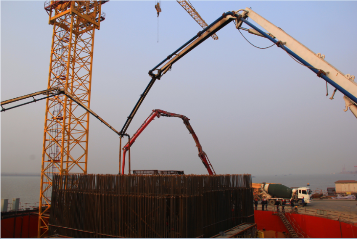 2月11日中午,由二航四公司施工的芜湖二桥南塔柱开始浇筑混凝土。芜湖二桥南索塔采用独柱形、空心八边形断面,索塔总高262.48 米,首节塔柱浇筑方量约700立方米,采用C50混凝土,浇筑高度为4.6米,属大体积混凝土。