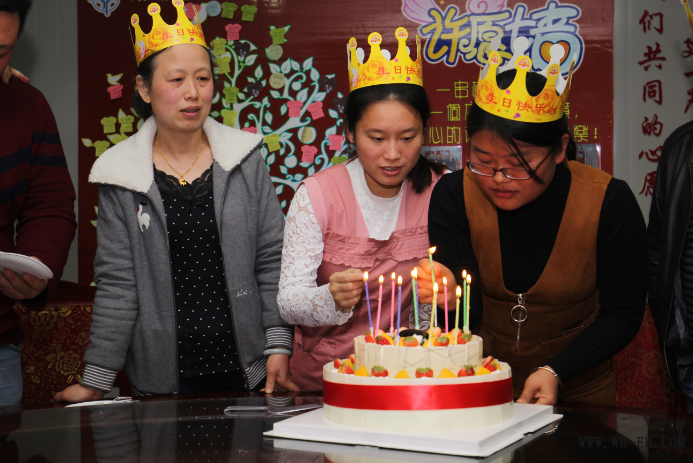 生日宴会自然是少不了唱生日歌吃蛋糕了。大家聚拢在蛋糕周围,在生日歌的伴奏下纷纷双手合十默默许愿,暖暖的烛光映照着大家的脸庞,餐厅里洋溢着一股和谐幸福的味道。还未等蛋糕切好,不知是谁开的头,大家便你抹我,我抹他的,一个个都成了“雪人”,你看看我我看看你哈哈大笑起来。