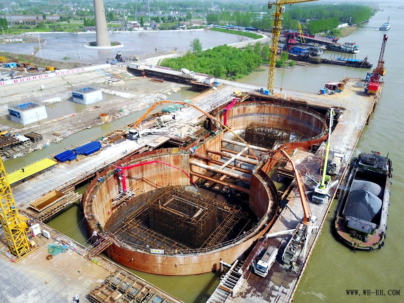 记者了解到,主塔水上施工难度远远大于陆上施工。首先,需要在长江水域插打直径达3.3米钢护筒74根;其次,搭设主墩施工平台,主墩施工平台上安装塔吊、龙门吊等机械设备;然后,采用10台国内外先进的KP4000气举反循环钻孔机,对74根直径为3.1米到2.8米的变径桩进行钻机成孔,下放钢筋笼灌筑混凝土;再次,整体哑铃型吊装钢围堰,使钢围堰完全包裹74钻孔桩;第三节钢围堰拼接下沉完毕后,再进行钢围堰混凝土封底;最后才能进行承台钢筋绑扎和承台混凝土浇筑。整个主塔工艺繁琐、施工技术要求高、施工周期长,安全要求更高。