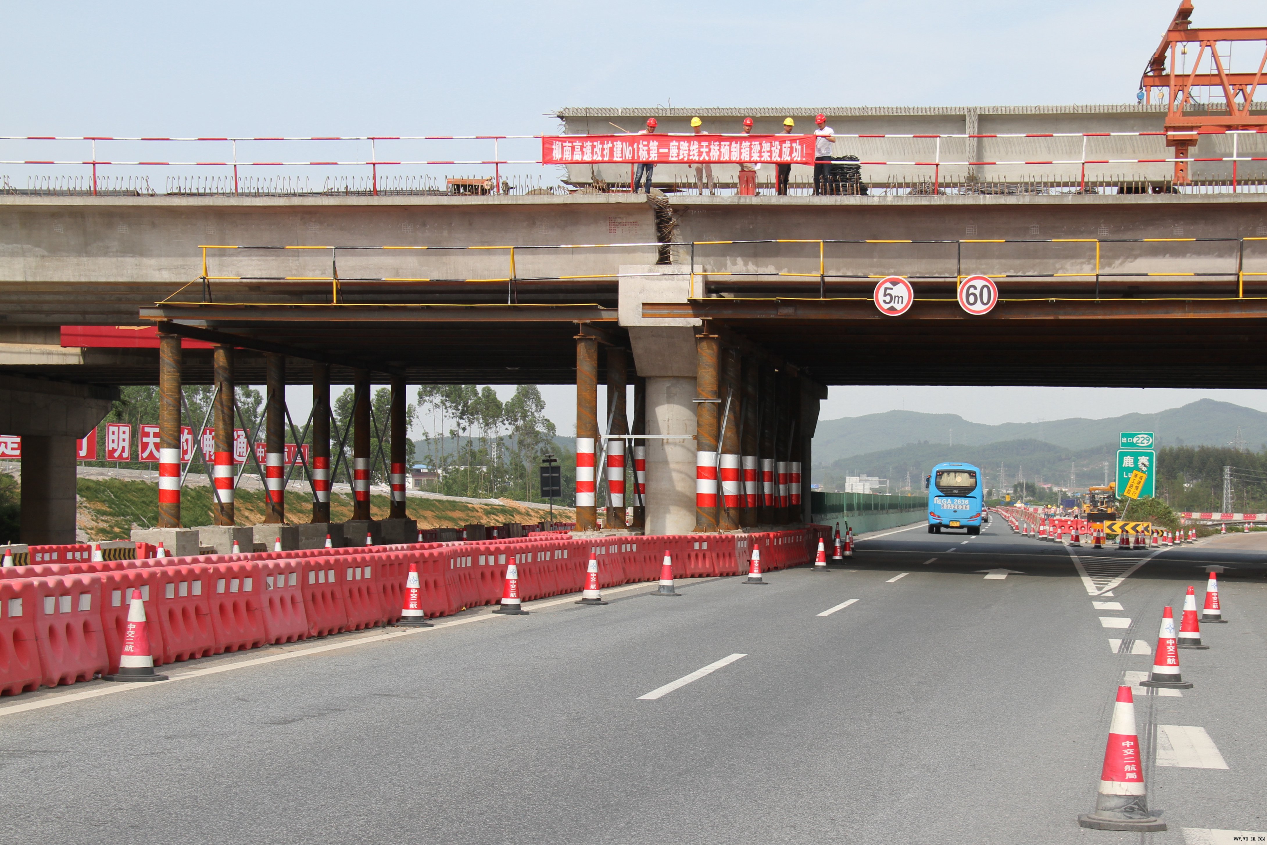 2017年4月23日下午,历经半个月的不懈努力,柳南高速鹿寨互通I匝道桥最后一榀30米箱梁成功安装,柳南改扩建№1标在全线十四个标段中实现跨线桥首架成功。