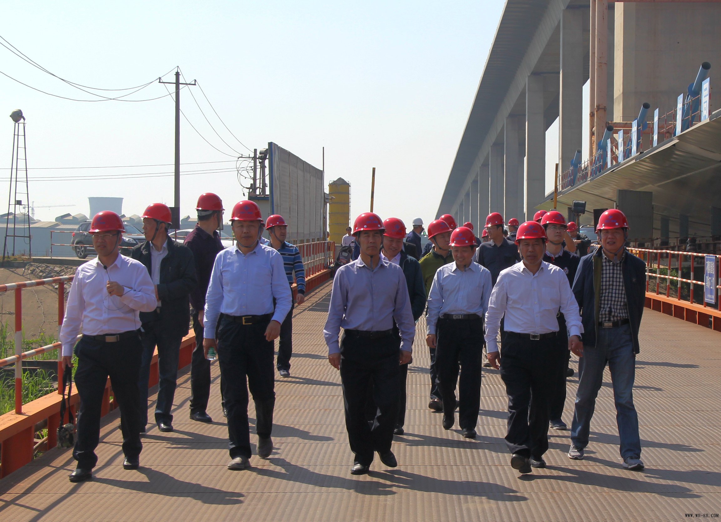 4月24日上午,天气晴朗,深圳市高速公路集团公司一行在二航局南方公司总经理宋华清陪同下乘车来到芜湖二桥项目部参观考察,二航局顾问杨志德、四公司副经理王德怀、芜湖二桥项目项目经理孙立军等在工地欢迎客人们的到来。