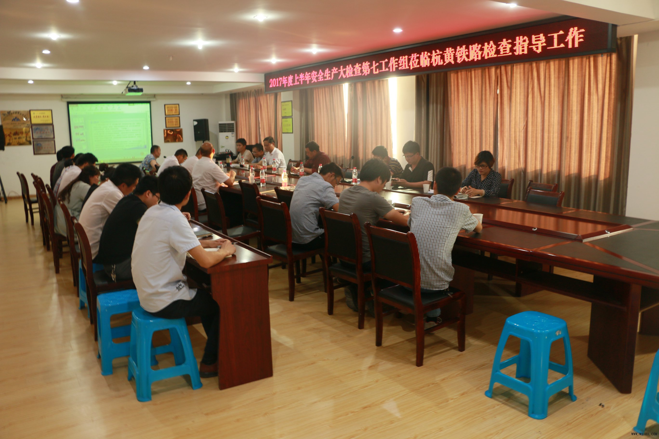 27日下午,工作组风尘仆仆地赶到杭黄铁路项目部后,就马不停蹄地在项目经理的带领下,去施工现场进行安全检查了,主要检查了富春江特大桥、石碣隧道出口高边坡等工点。检查完现场后,工作组成员来到项目部大会议室,听取了安全汇报。