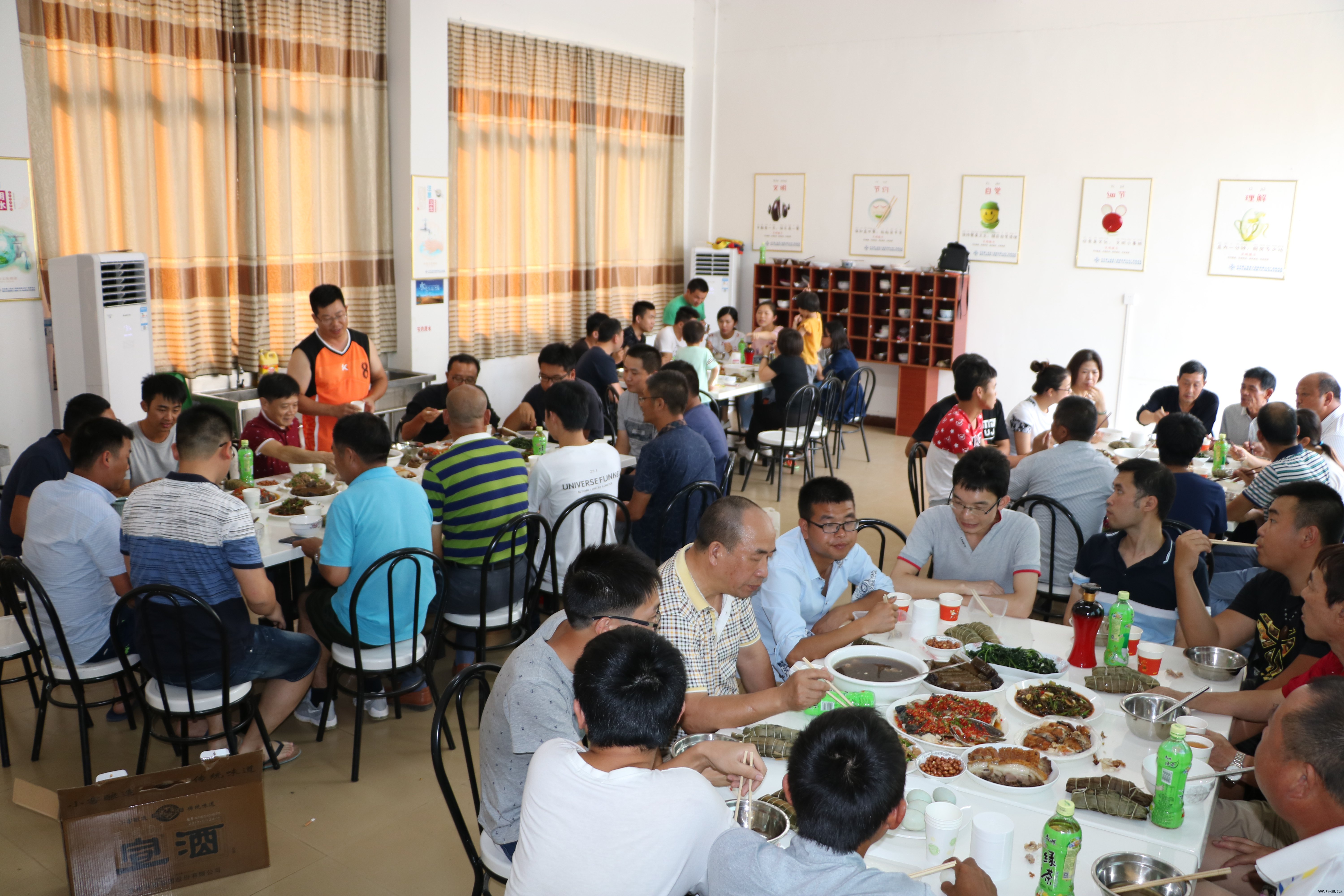 与去年端午节不同的是,今年项目部没有举办丰富的活动,只是在晚间吃饭前组织大伙打一场篮球,赛一局掼蛋,也算是给大家劳碌的身体放个假。