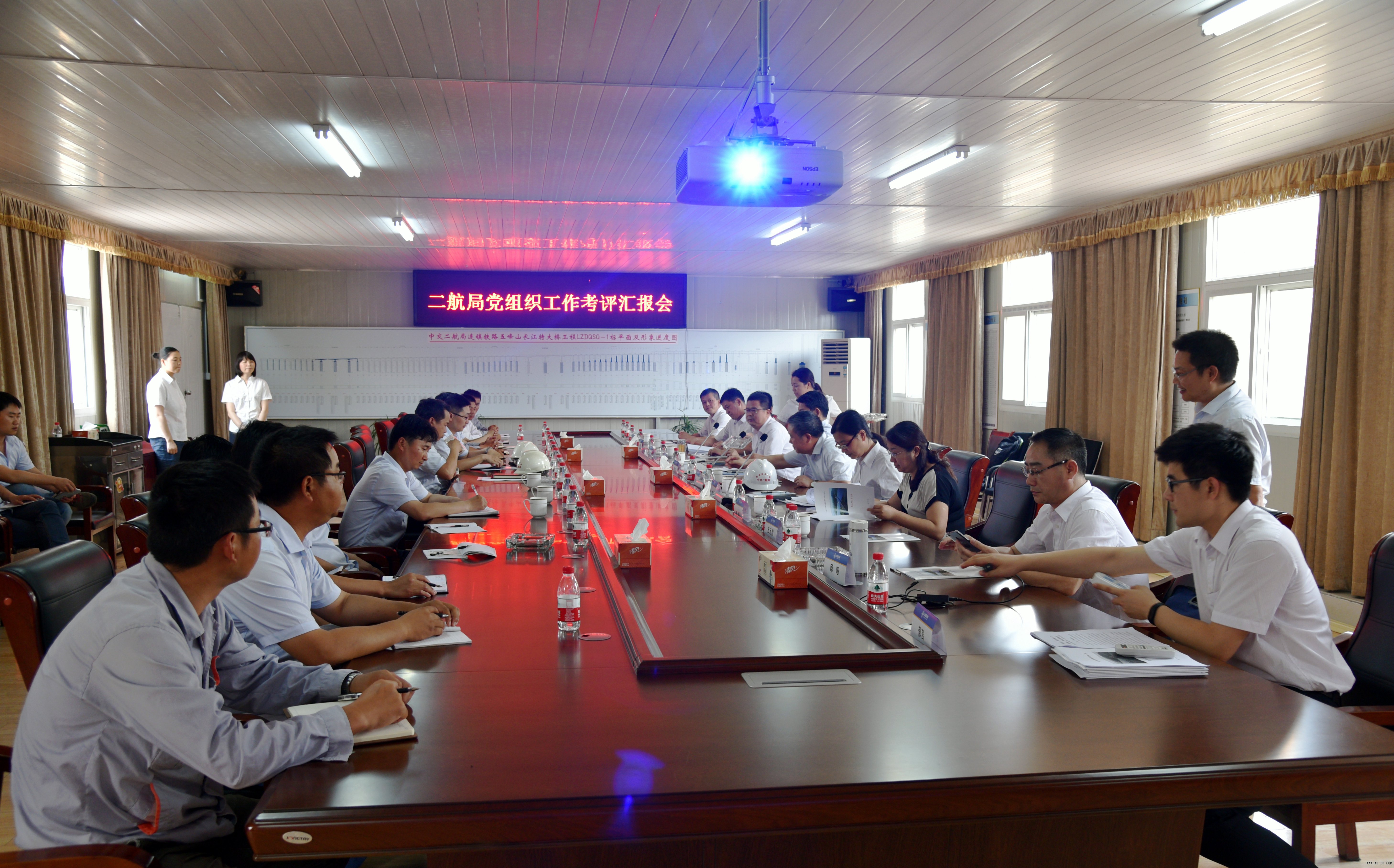 在项目部会议室,考评组听取了项目部一分部党支部、项目党工委以及项目部的行政工作汇报,观看了工程施工多媒体动画介绍,并进行了项目部党务组织廉政等方面工作的民主测评,还分别查阅项目部支部党务工作各个方面的基础资料,认真细致的开展此次考评工作。张文胜对项目部党组织在过去一年的工作给予积极评价和肯定,并要求项目部要继续落实好三重一大工作;把握党务工作的核心引领作用;搞好班子建设;保障基层党组织正常组织生活;做好人才培养和监督把关;加大反腐倡廉工作;做好企业文化的传播工作。