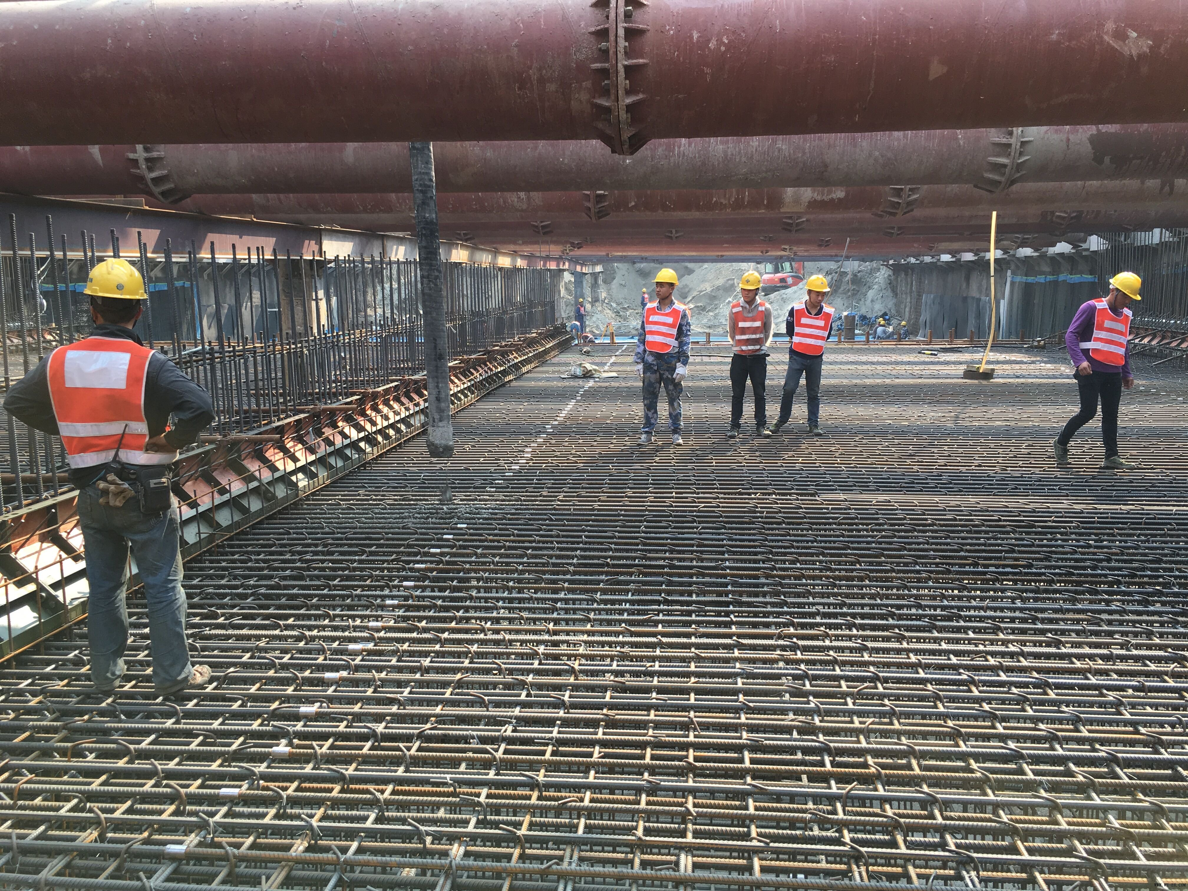 经过前期的努力奋战,目前该隧道区域的管线迁改、征地拆迁已基本完成,隧道主体工程施工作业面已陆续开展(目前已开展四个作业面同步施工),而本次浇筑的首块隧道底板位于维扬路路口西侧第十节段,设计砼方量为1356立方米,该底板的成功浇筑标志着扬子江隧道主体工程施工正式拉开帷幕,同时也将为维扬路口西侧第五个隧道施工作业面的开展垫定坚实的基础,后续项目部将紧紧围绕“五个隧道施工作业面”展开流水作业,再接再厉,继续加强现场施工组织,加大人员设备的投入,为 “9.30”隧道主体工程完工的节点性目标而努力奋战。
