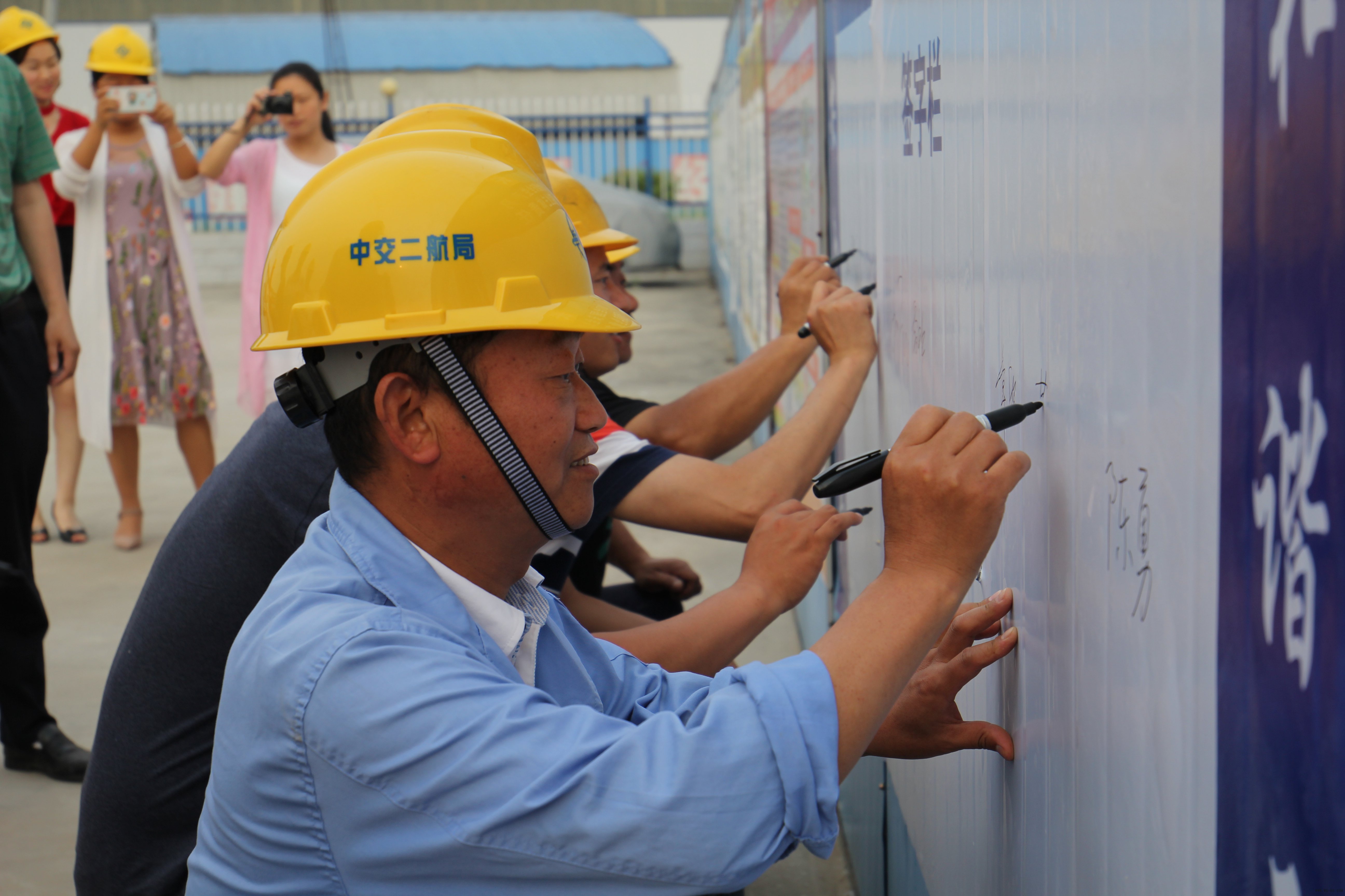 项目部利用横幅、LED显示屏等形式宣传2017年安全月活动主题;通过现场悬挂安全宣传画营造安全氛围;举行安全生产签字活动,强化管理人员及作业人员的安全意识及责任感,充分营造“安全生产、人人有责”的浓厚氛围。