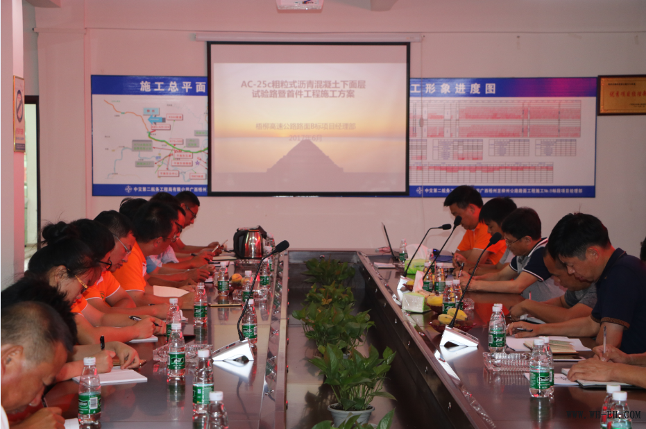 6月15日,四公司梧柳路面B标召开沥青路面试验段技术交底会,项目部相关人员、施工协作单位、监理单位代表济济一堂,为沥青路面试验段顺利实施献言献策。