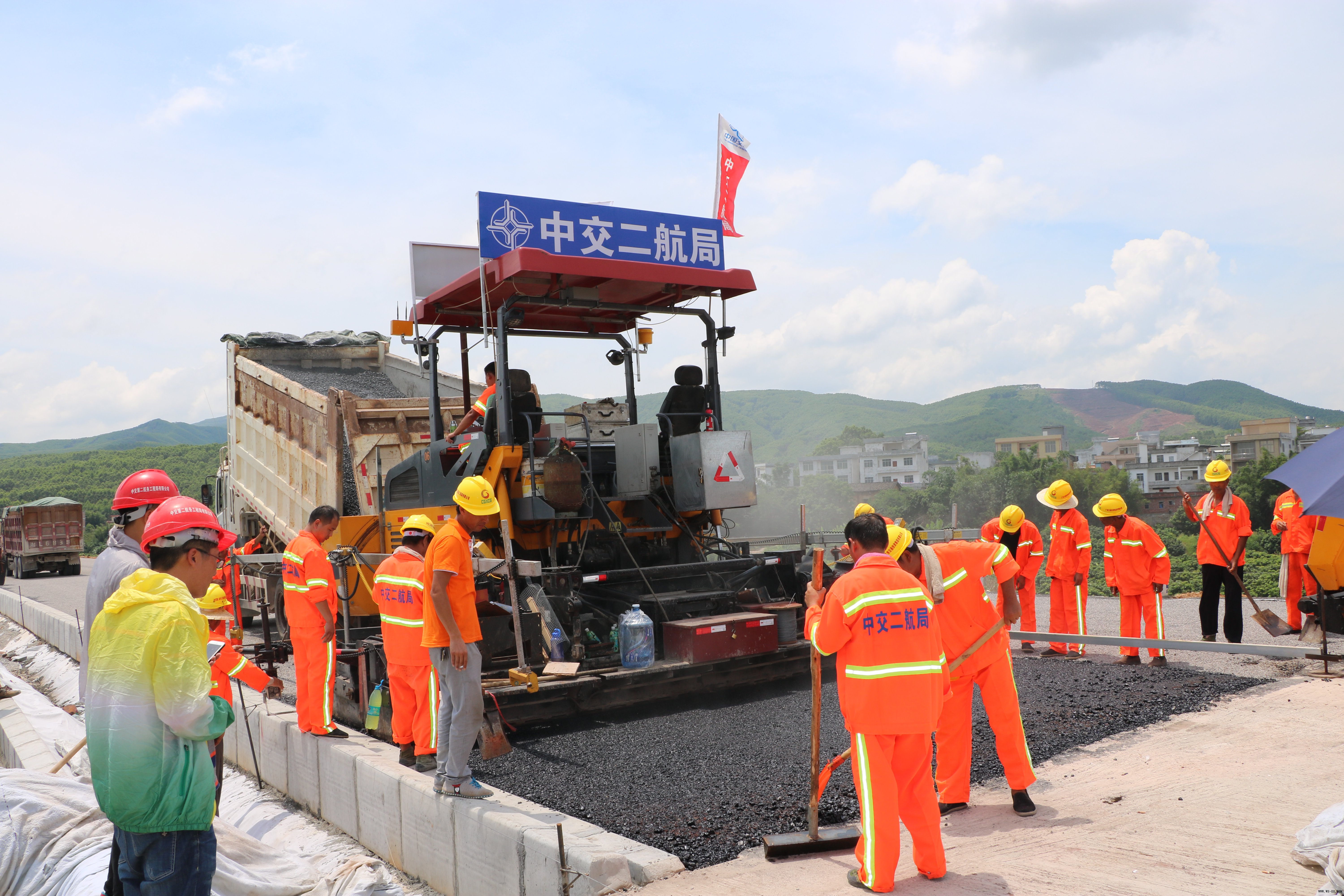 6月24日下午,中交二航局梧柳高速项目部施工现场机器轰鸣,经过工4个多小时的连续奋战,项目部以充分的超前准备、绝佳的机械组合和完善的后勤保障,顺利完成405米沥青下面层试验段摊铺。
