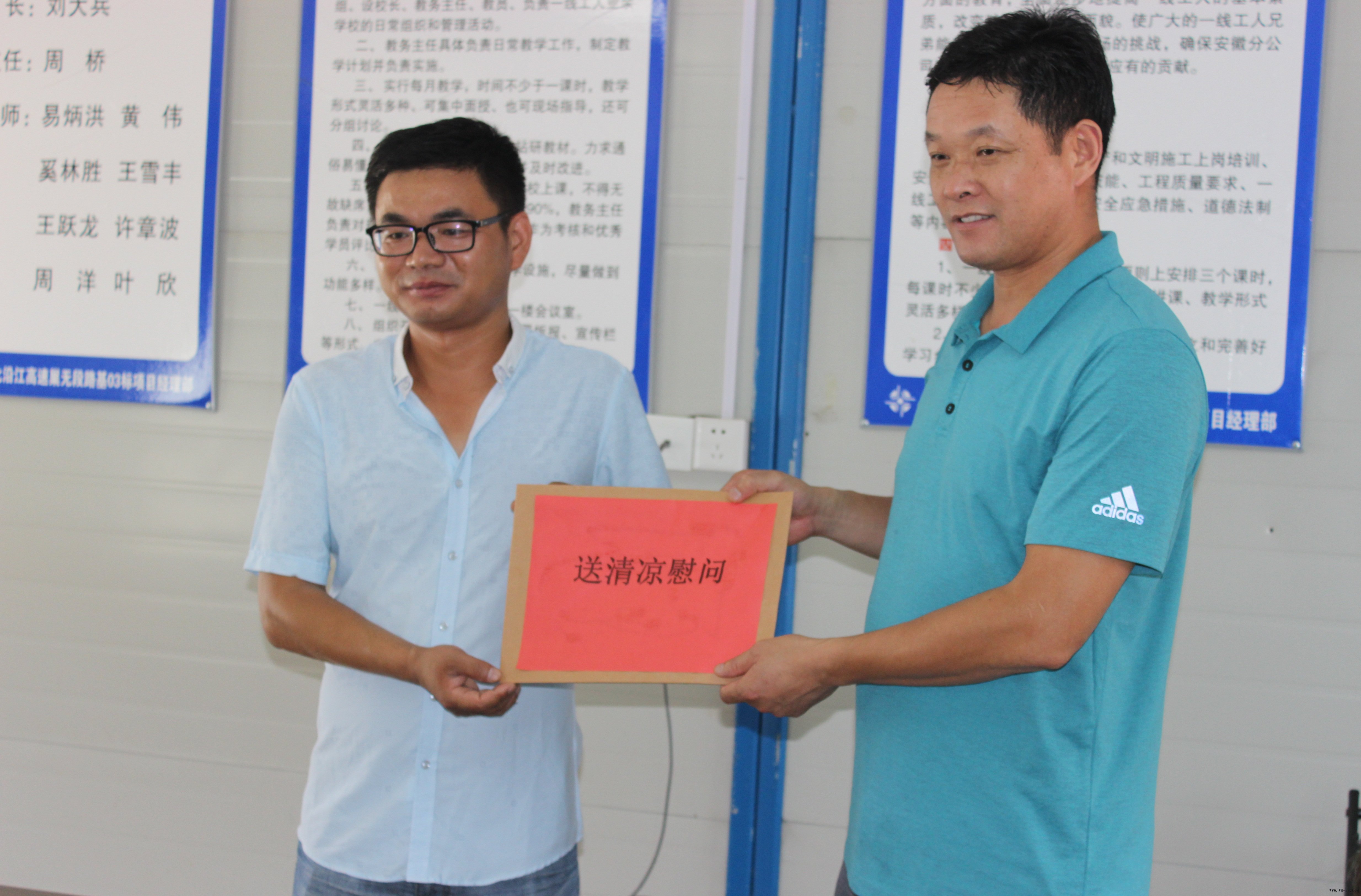 最后,项目部领导代表全体员工接受了慰问金。员工们感谢工会组织的慰问和关怀,纷纷表示一定做好防暑工作,也不会忘记安全优质地建设好北沿江高速。