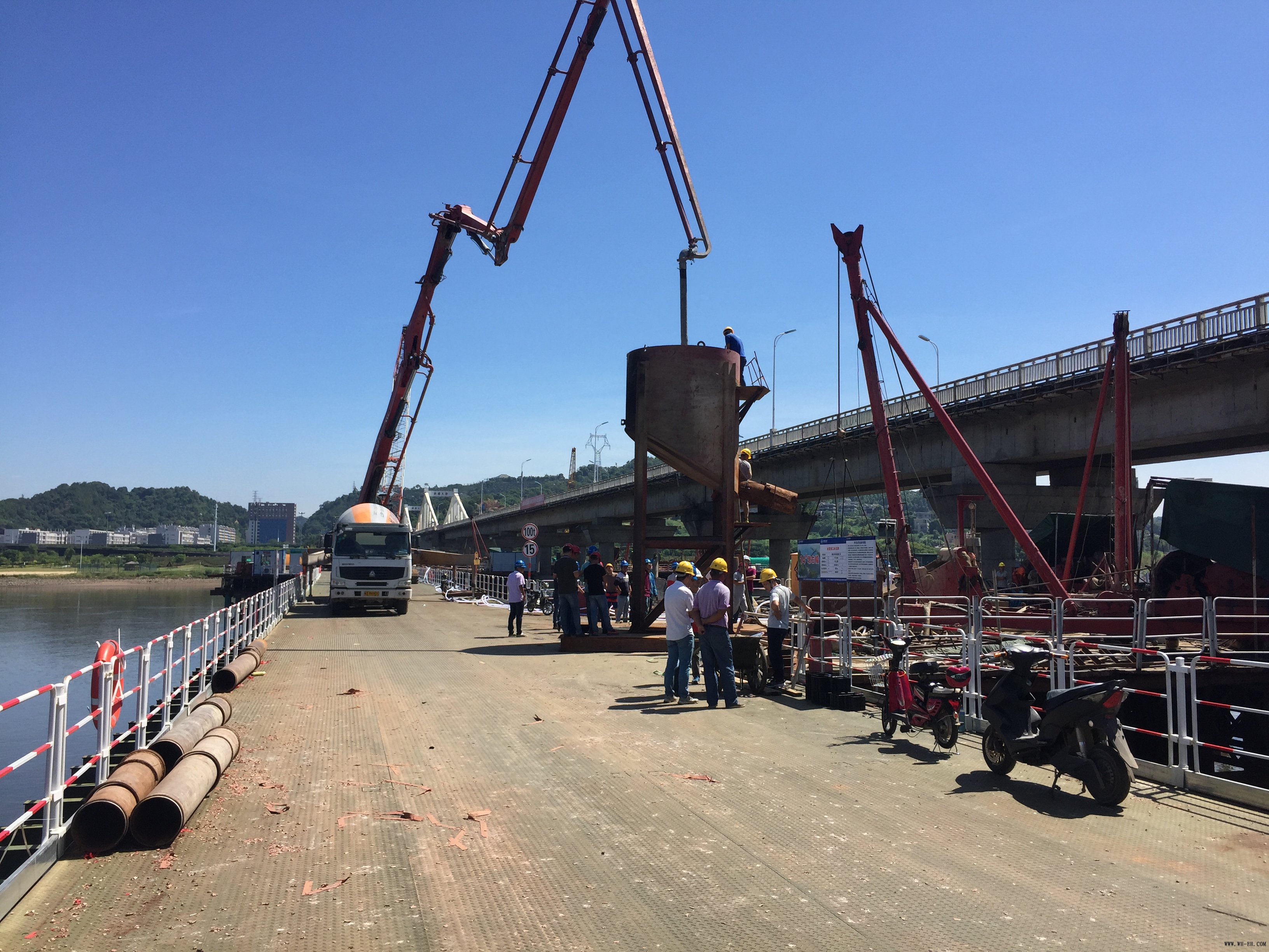 9月25日,历时近6个小时,福州洪塘大桥拓宽改建工程主桥14-10#钻孔桩顺利完成混凝土灌注,正式拉开了福州洪塘大桥拓宽改建工程大干快干的帷幕。截止目前全桥共完成9根钻孔桩,进场41台钻机。