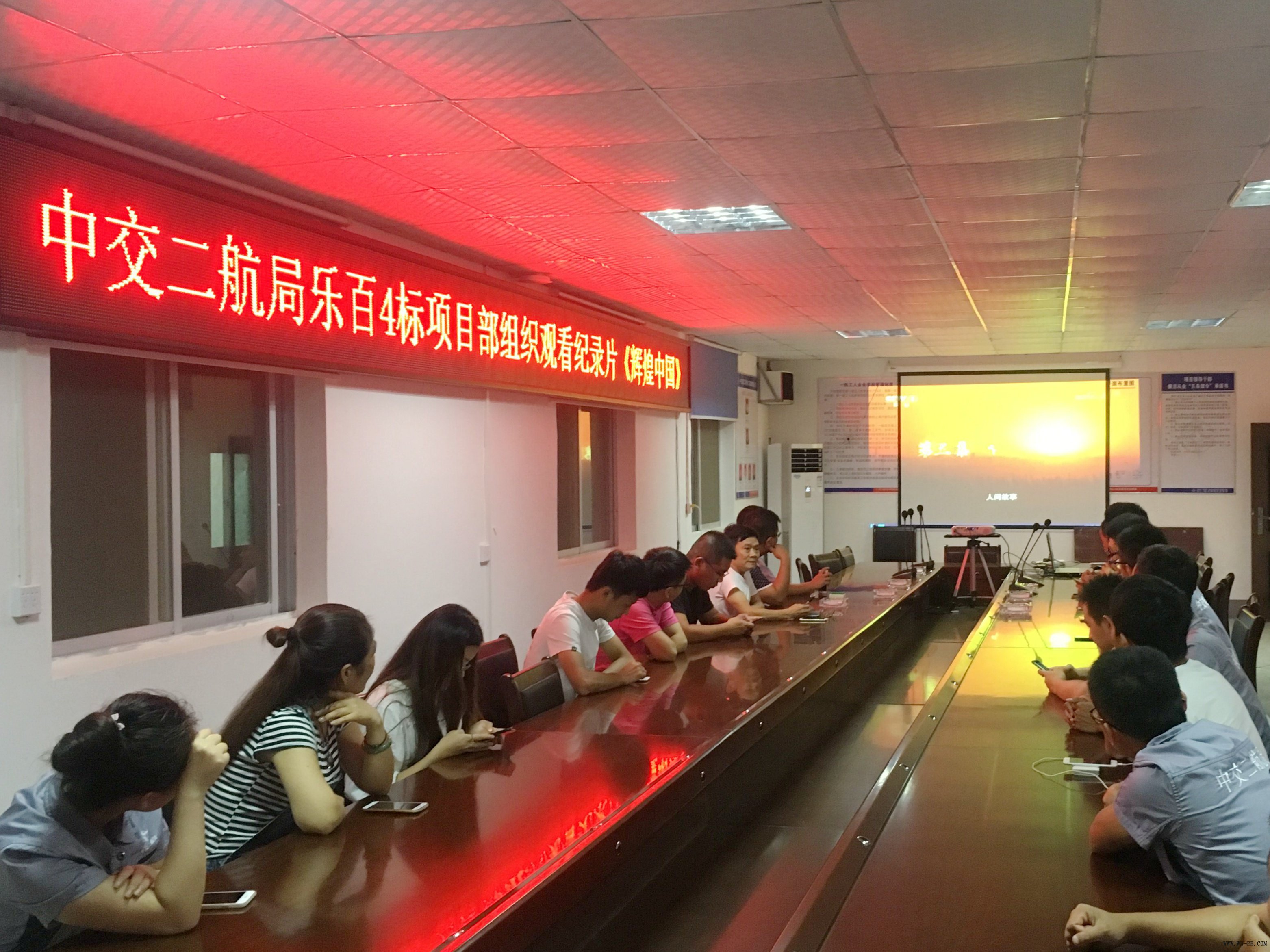 9月21日晚八点钟,乐百高速4标项目部组织员工观看了纪录片《辉煌中国》的第三集《协调发展》,项目部领导班子及各员工均参加了此次观看学习活动,共同体会党的十八大所带来的翻天覆地的变化。