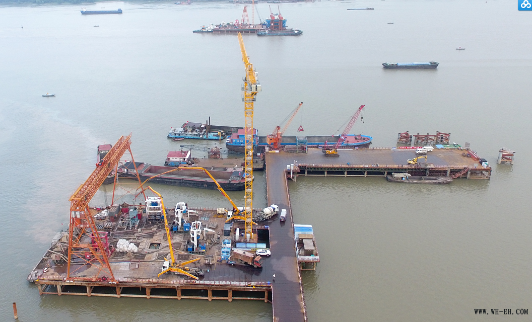 钻孔灌注桩施工是整个大桥施工工序的基础环节,也是最重要的环节。由于大桥桩基位于长江上,地势复杂,安全隐患多、施工难度大。自2017年5月8号开工以来,施工方采用多种方法攻克难关,提高效率,而且各职能部门分工明确、互相配合,从桩基的开钻、成孔、检孔、下放钢筋笼到水下混凝土灌注,每道工序、每个环节均实施严格控制,使得钻孔灌注桩施工得以提前完工。