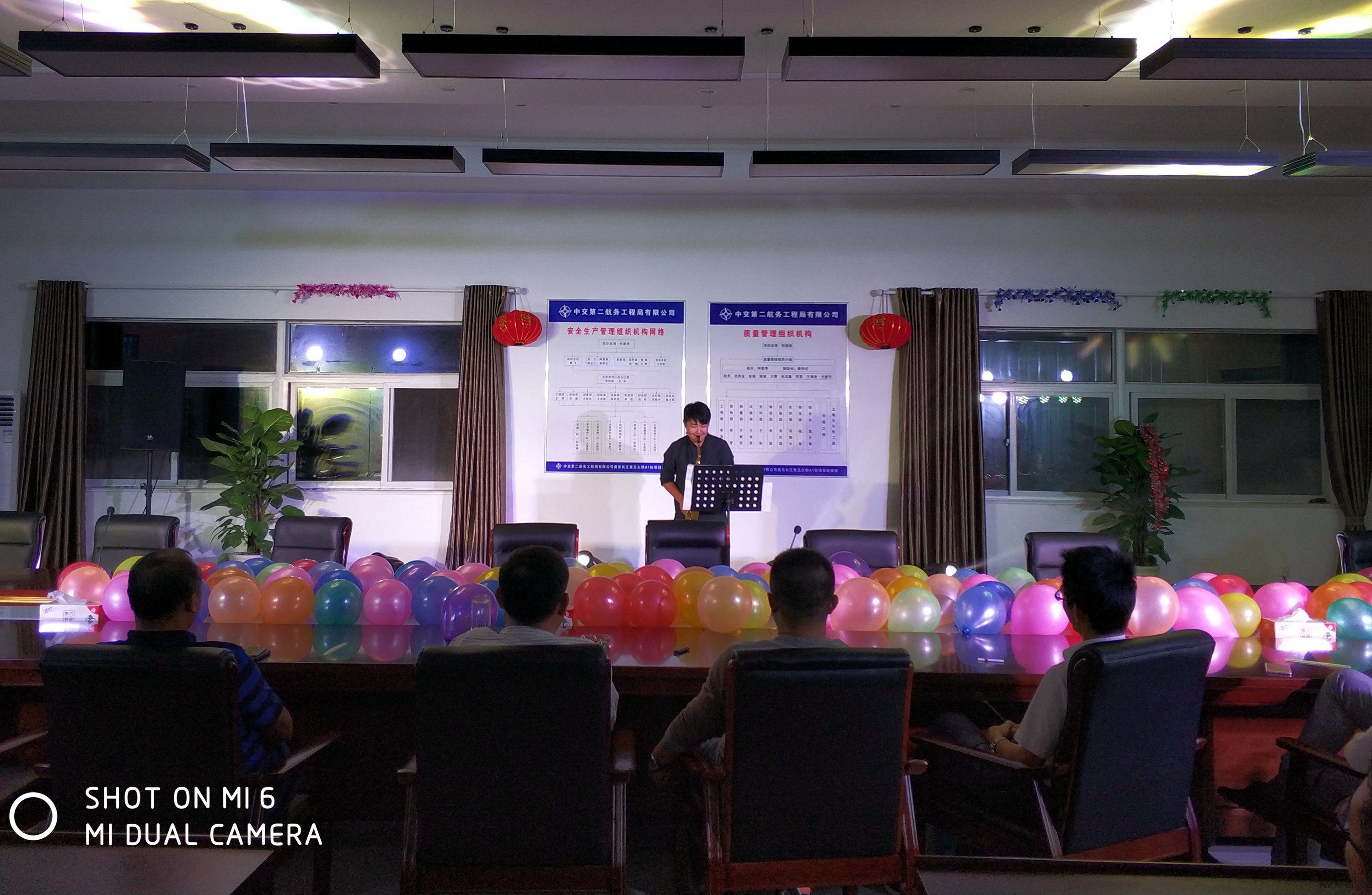晚上7点30分,主持人热情洋溢的演说拉开了晚会帷幕。20个节目全部由员工自编自演,内容丰富多彩,主要包括:歌曲、萨克斯独奏、配乐诗朗诵等。新员工张毅的一首《浮夸》博得大家热烈掌声,激扬的乐曲徜徉在大家的心田;萨克斯独奏的《千千阙歌》,流淌的是伤而不悲的情怀;《北京北京》诠释了出门在外的人努力拼搏的艰辛和痛苦;《一路上有你》展现了对爱情的坚贞不渝;项目书记掌飞的一首《在榕树下》,更是将全场的氛围推向了高潮。整台晚会为大家带来了一场视觉和听觉的盛宴。然而时光总是短暂的,在一片欢声笑语中,此次晚会也接近尾声。