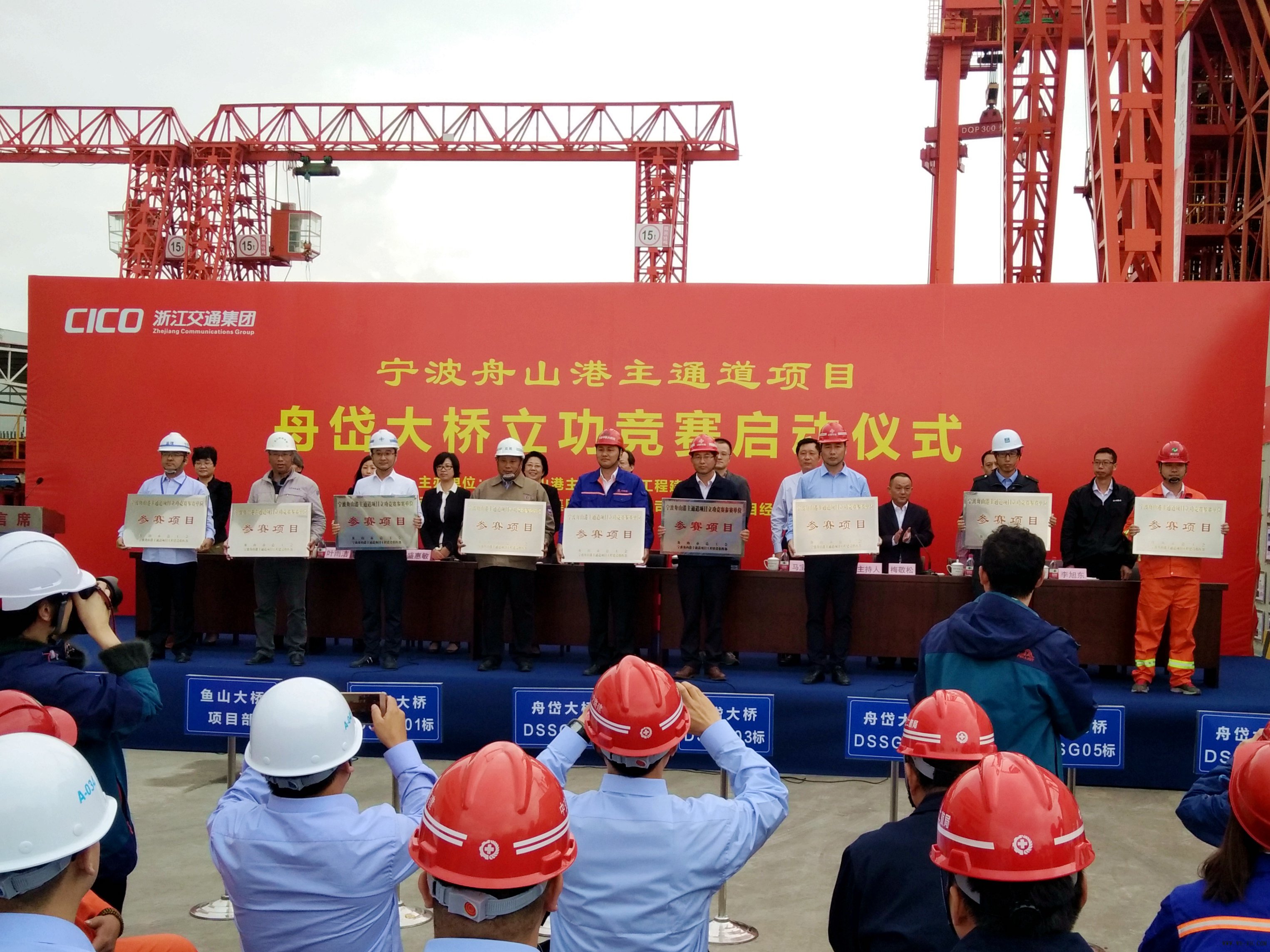 10月20日上午9时,宁波舟山港主通道项目舟岱大桥立功竞赛启动仪式在舟山举办,浙江省总工会副主席张卫华、省交通投资集团党委副书记、工会主席黄伟建、舟山市总工会副主席盛惠敏等领导出席了启动仪式。