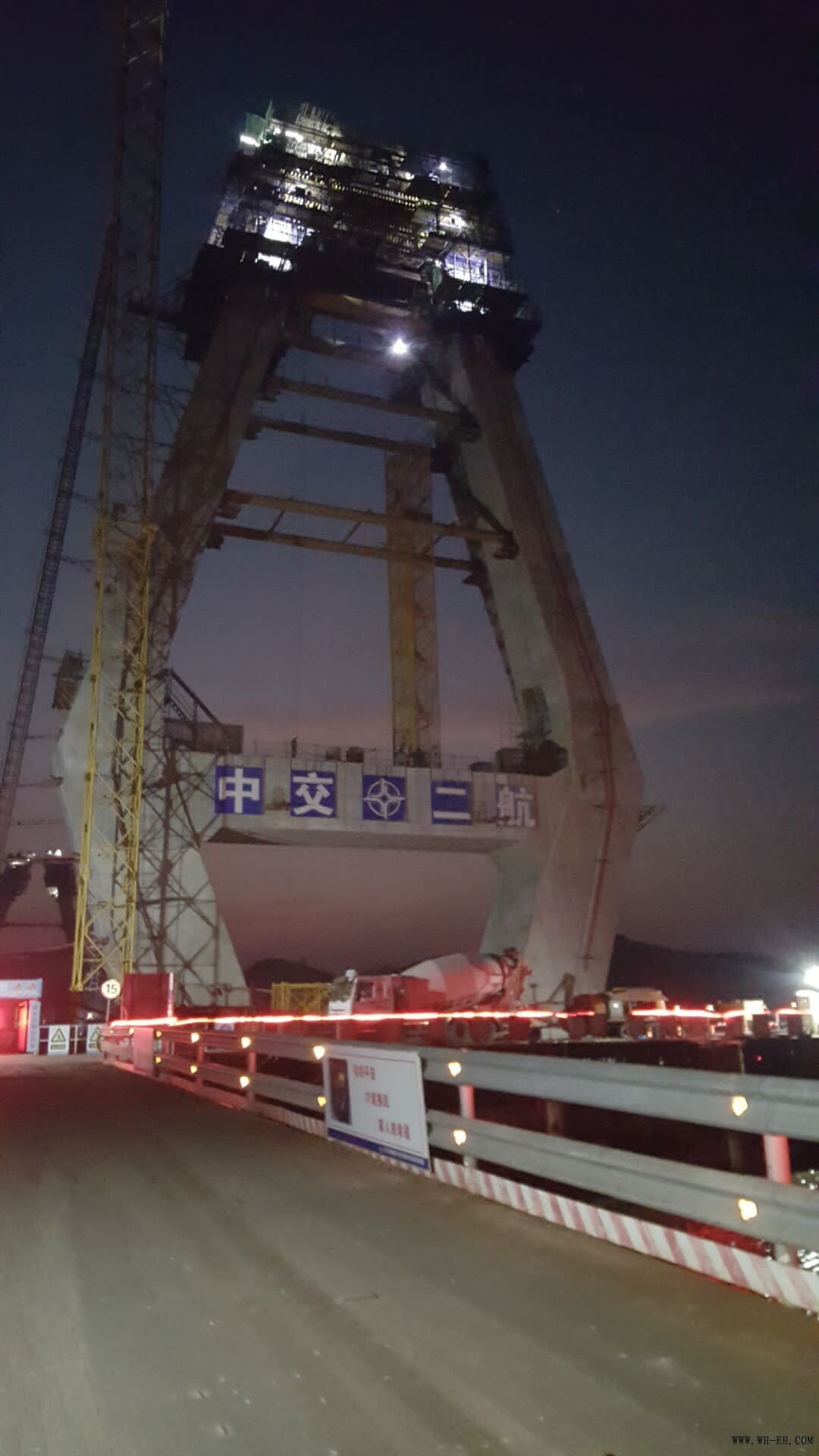 2017年12月13日,伴随着最后一辆混凝土罐车的离开,富翅门大桥主塔合龙段混凝土顺利完成浇筑。