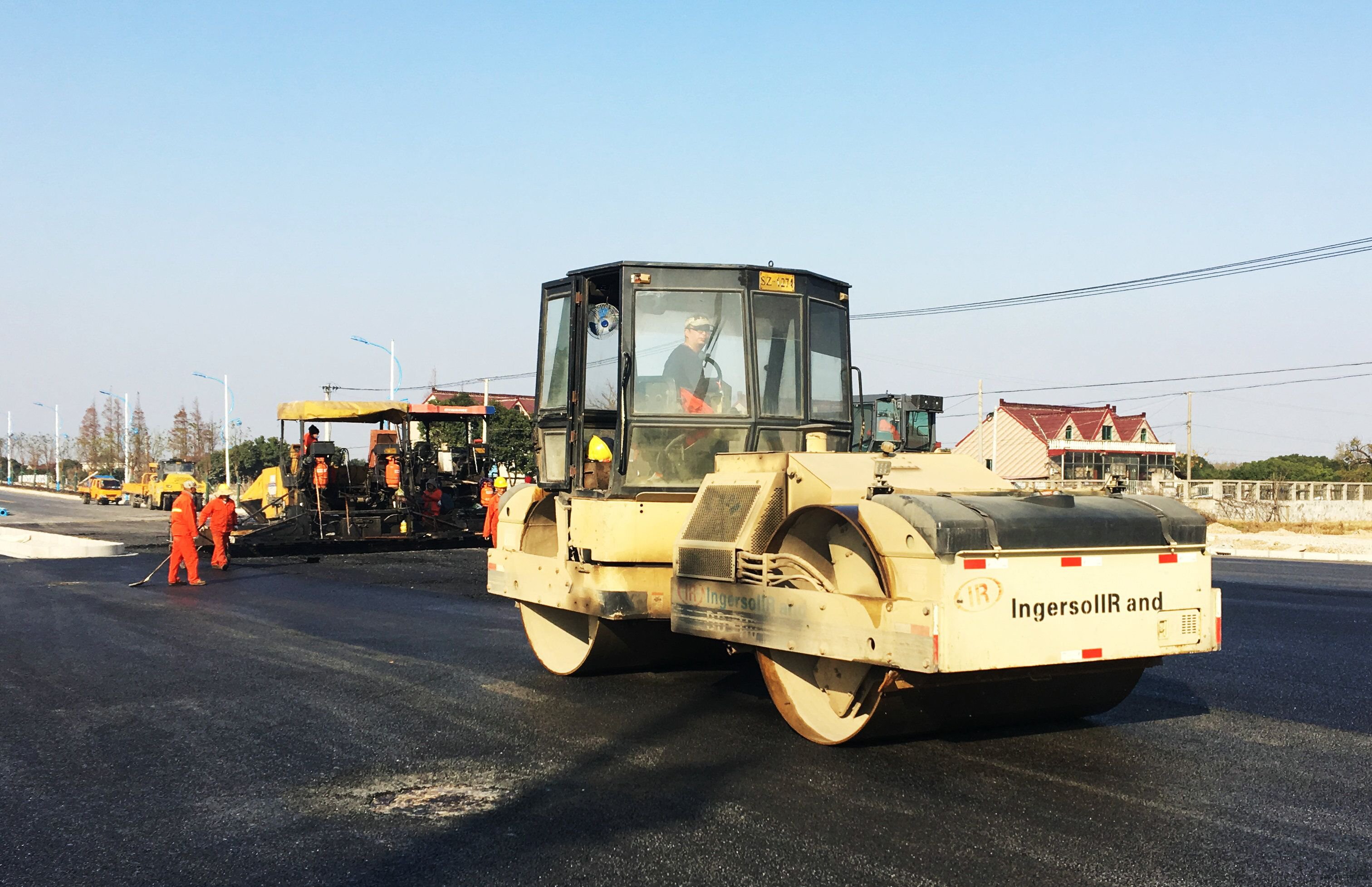 12月18日,随着最后一个交叉道口沥青摊铺完成,奉贤江海南路全线贯通,比合同工期提前近2个月,为元旦通车创造了条件。