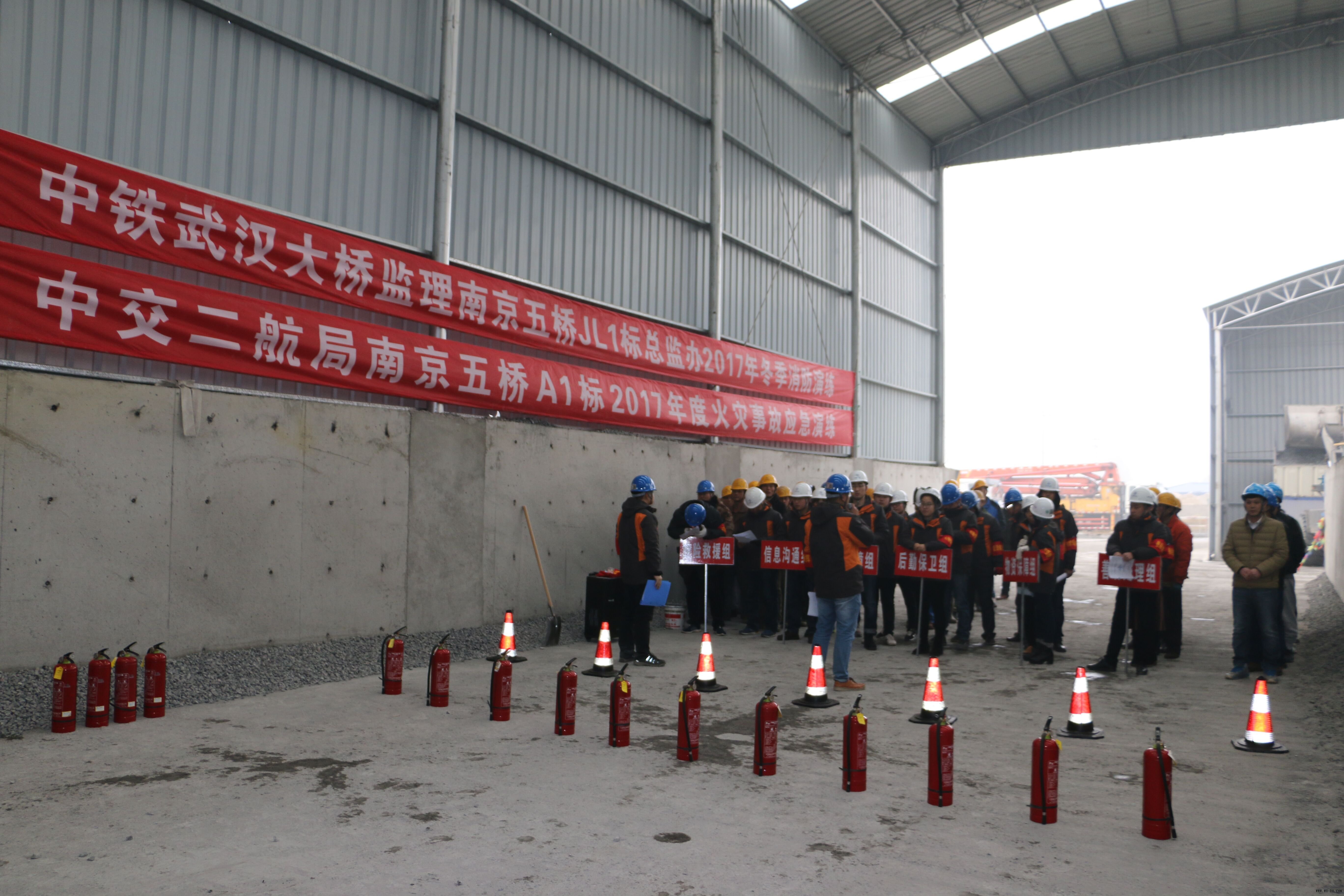 12月30号下午3点,南京五桥A1标项目部在后场搅拌站开展火灾事故应急演练,由项目书记掌飞担任总指挥,并邀请总监办有关领导观摩点评。