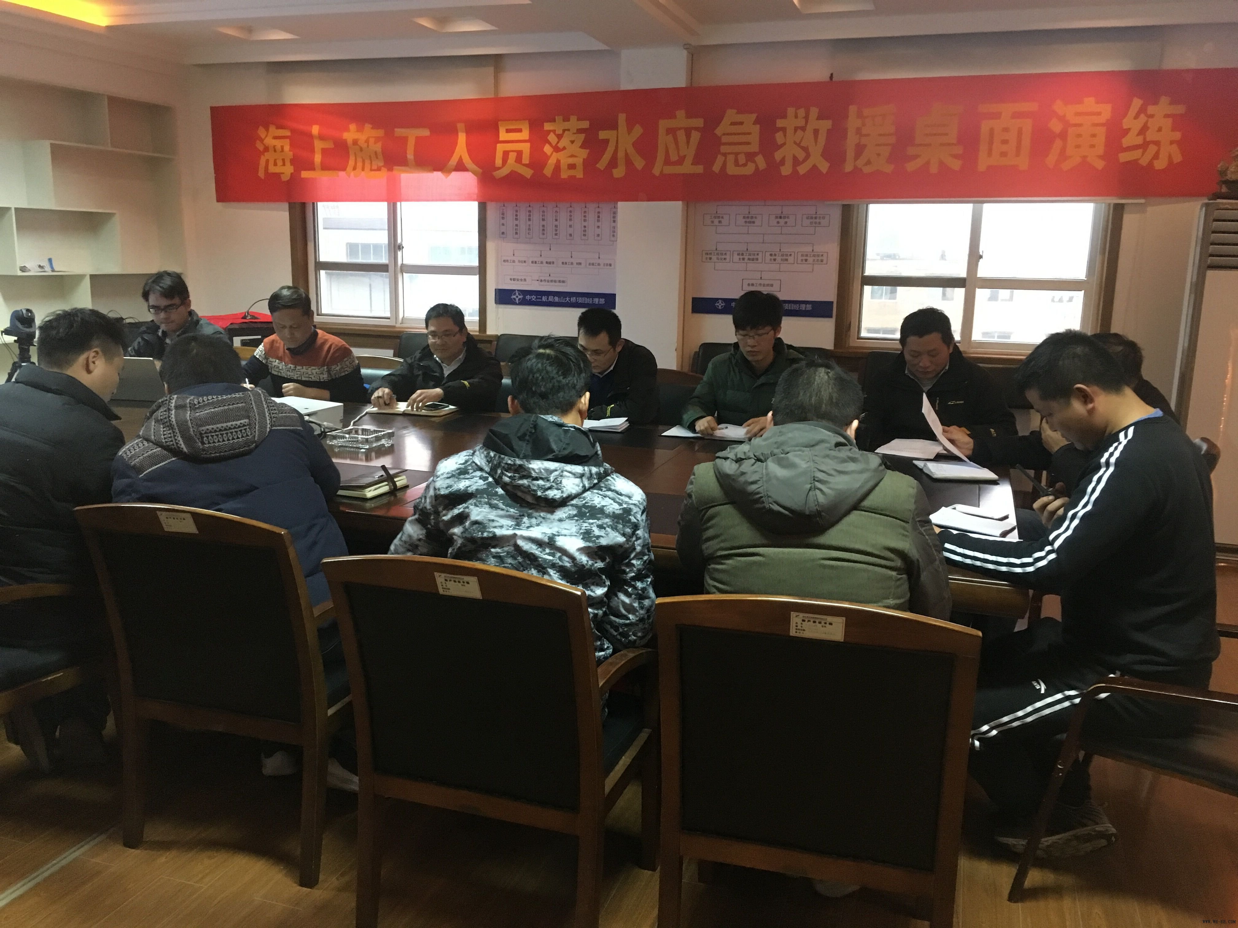 继12月24日下午举行的冬季消防应急救援实战演练之后,宁波舟山港主通道四标项目部于12月30日下午在项目部会议室举办了人员落水应急救援桌面演练。
