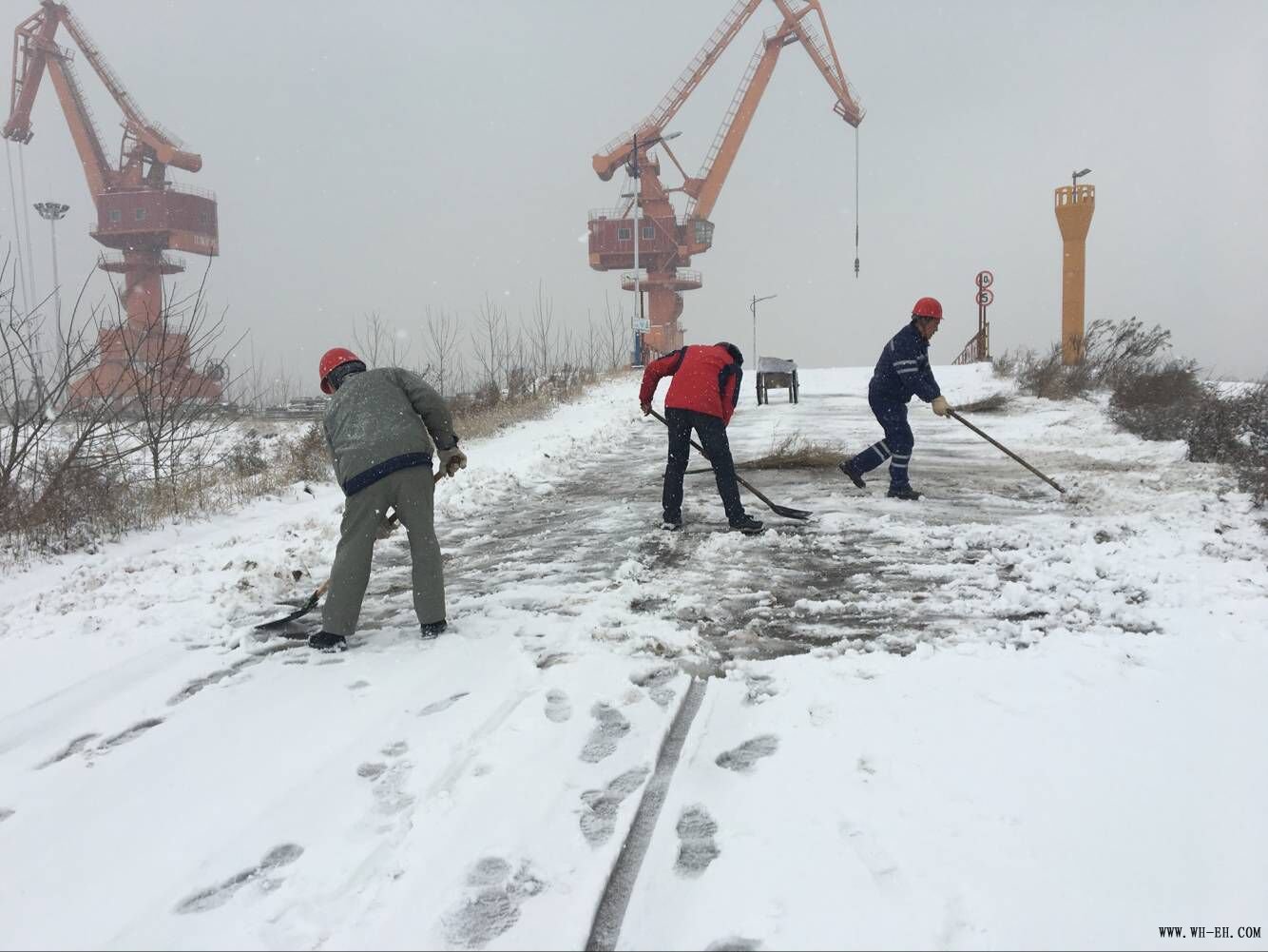 25日一早,分公司便开展了紧急铲雪工作。砼供应中心、工区、起重组均加入到铲雪队伍中,并动用铲车,对场区内主干道以及金山港码头的积雪进行清扫,为员工和行人扫出一条干净、畅通的大道。同时,我们还协助社区清扫裕溪口街道上的积雪,为街道居民带去平安大道。