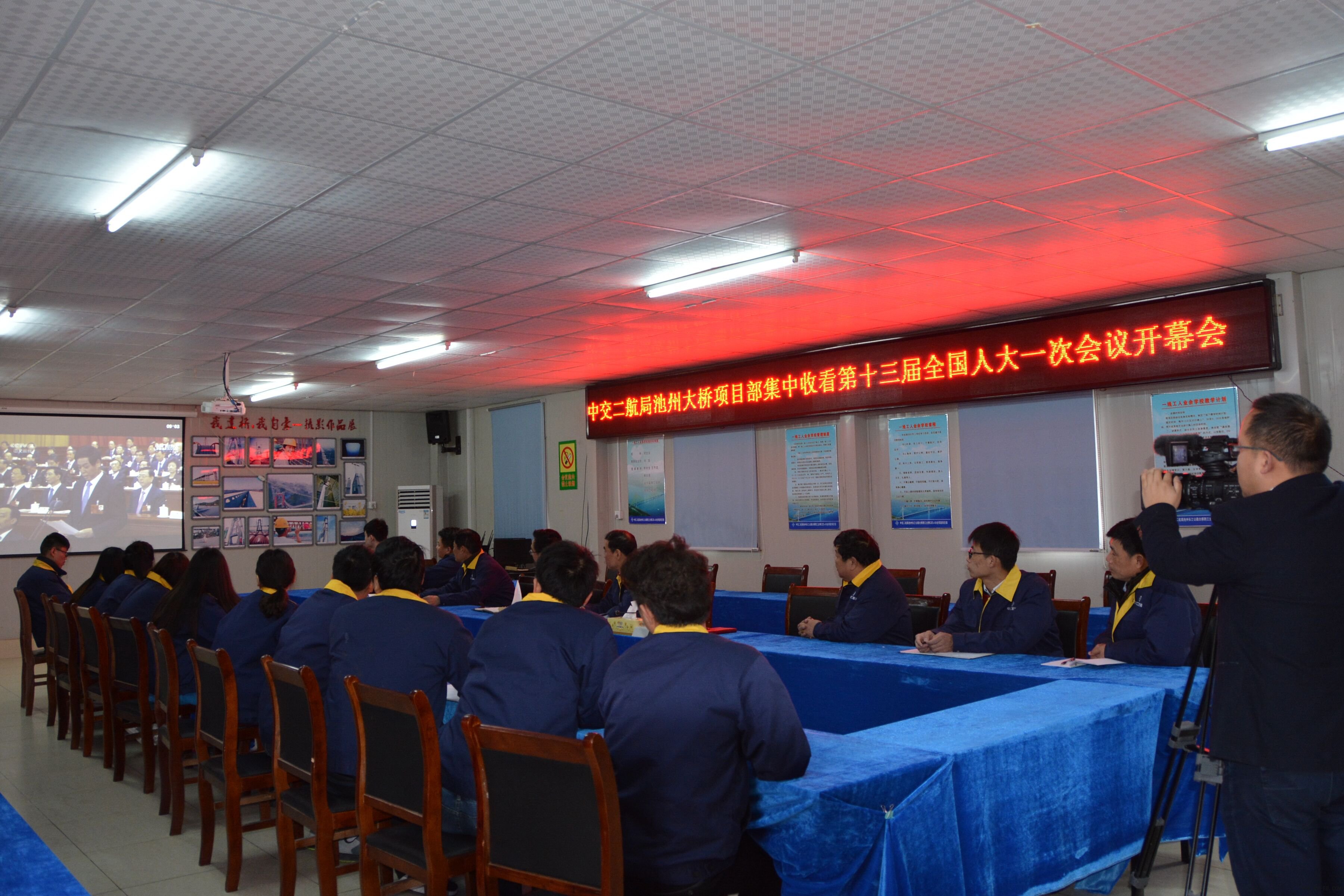 3月5日上午九时,池州大桥项目部全体员工到会议室收看第十三届全国人大一次会议开幕会。