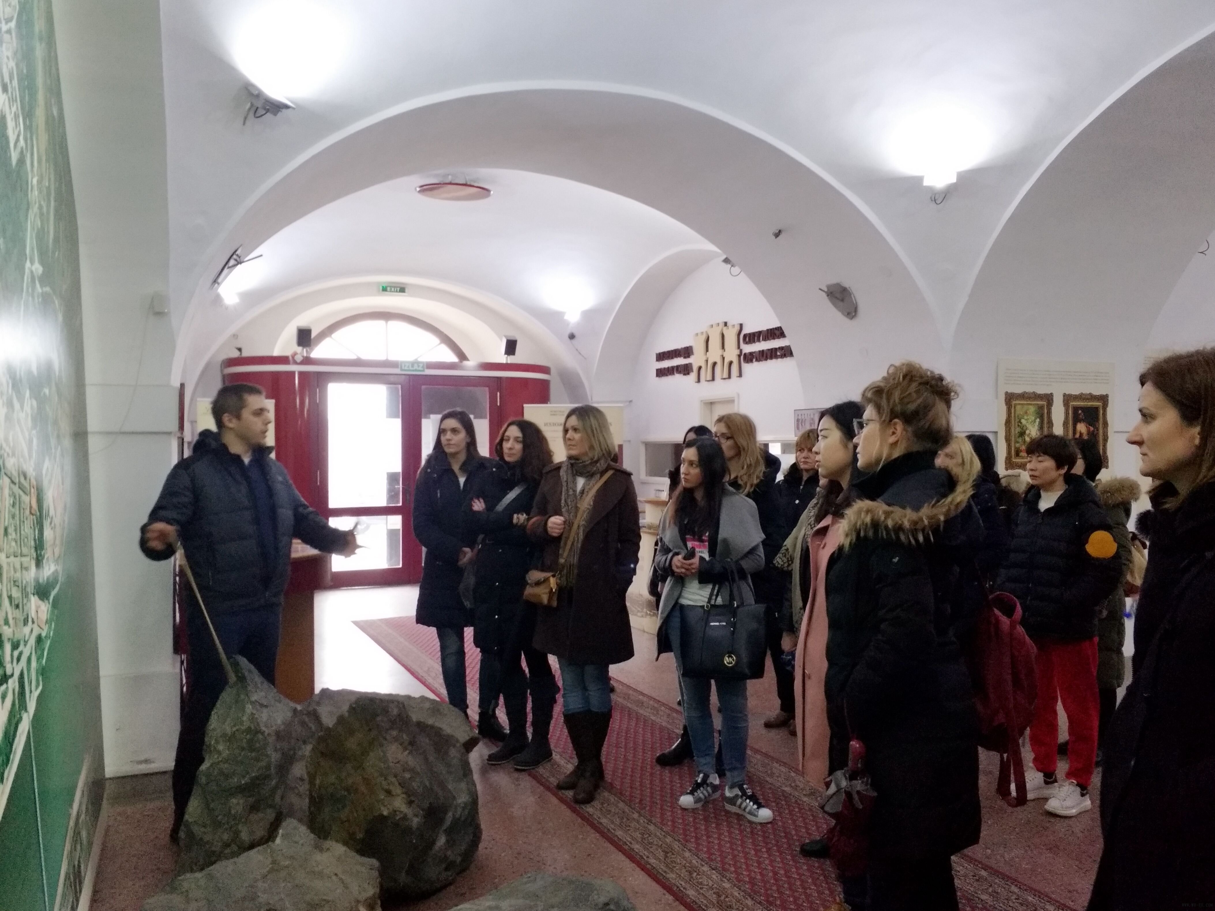 诺维萨德博物馆内展示了石器时代的出土文物,中世纪和近代武器。女员工们在导游带领下,感受和熟知一带一路沿线文化,品读了斯拉夫军人的铮铮傲骨和在战争中崭露头角的各种武器,惊叹于军事密道的玄妙和前人的伟大,领略了“文化史厅”中18世纪上半叶到20世纪中叶的城市生活。