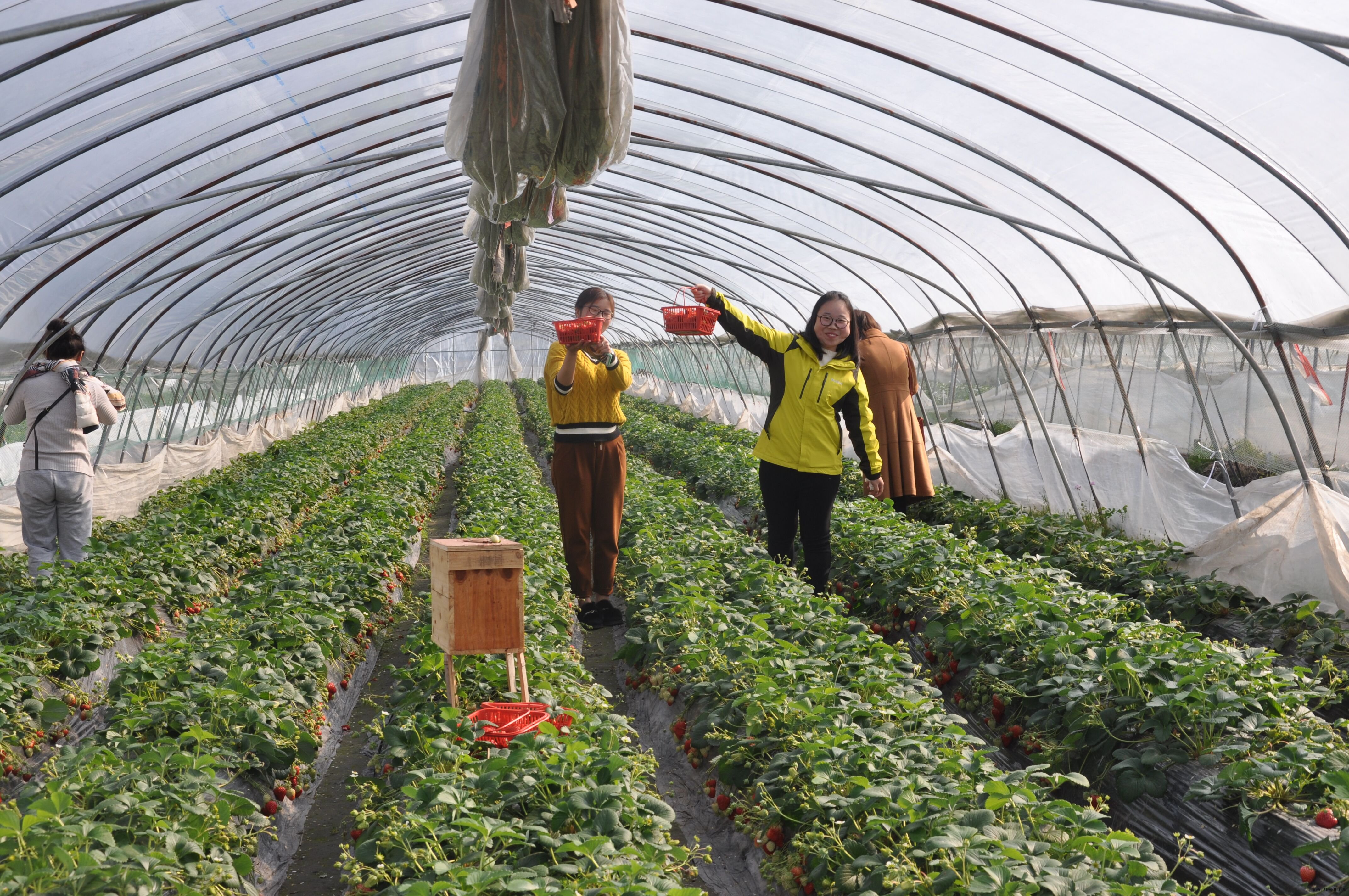 春日的午后,阳光带着一股暖意。一行人驱车来到三门里的草莓园,大棚中的草莓显现出生机勃勃的姿态。鲜艳欲滴的她们,如那热情如火的桑巴女郎一般,邀请我们参与这春日盛会。你一口、我一个,在园中寻觅那最鲜甜的味道,不一会儿的功夫,我们的篮子都已盛满红色的果实。