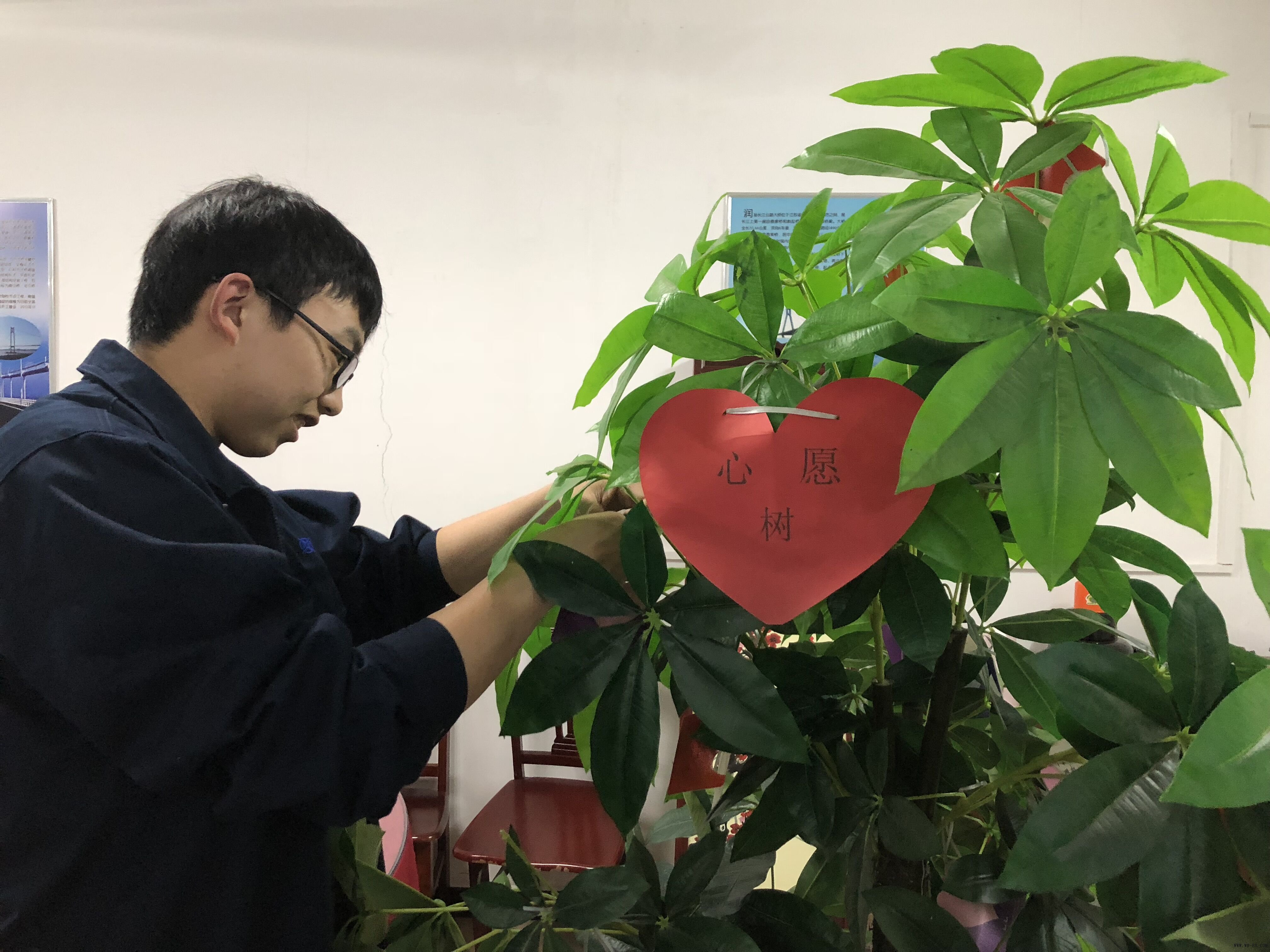 项目部为使集体生日过得更有意义,专门策划了“心愿树”“栏目”。寿星们将自己的心愿写在心愿卡上,并将心愿卡挂在“心愿树”上,表达对大桥建设的美好祝愿。大家举杯共饮间,欢声笑语洒满了整个房间,仿佛一天的疲惫与辛苦都没有了。