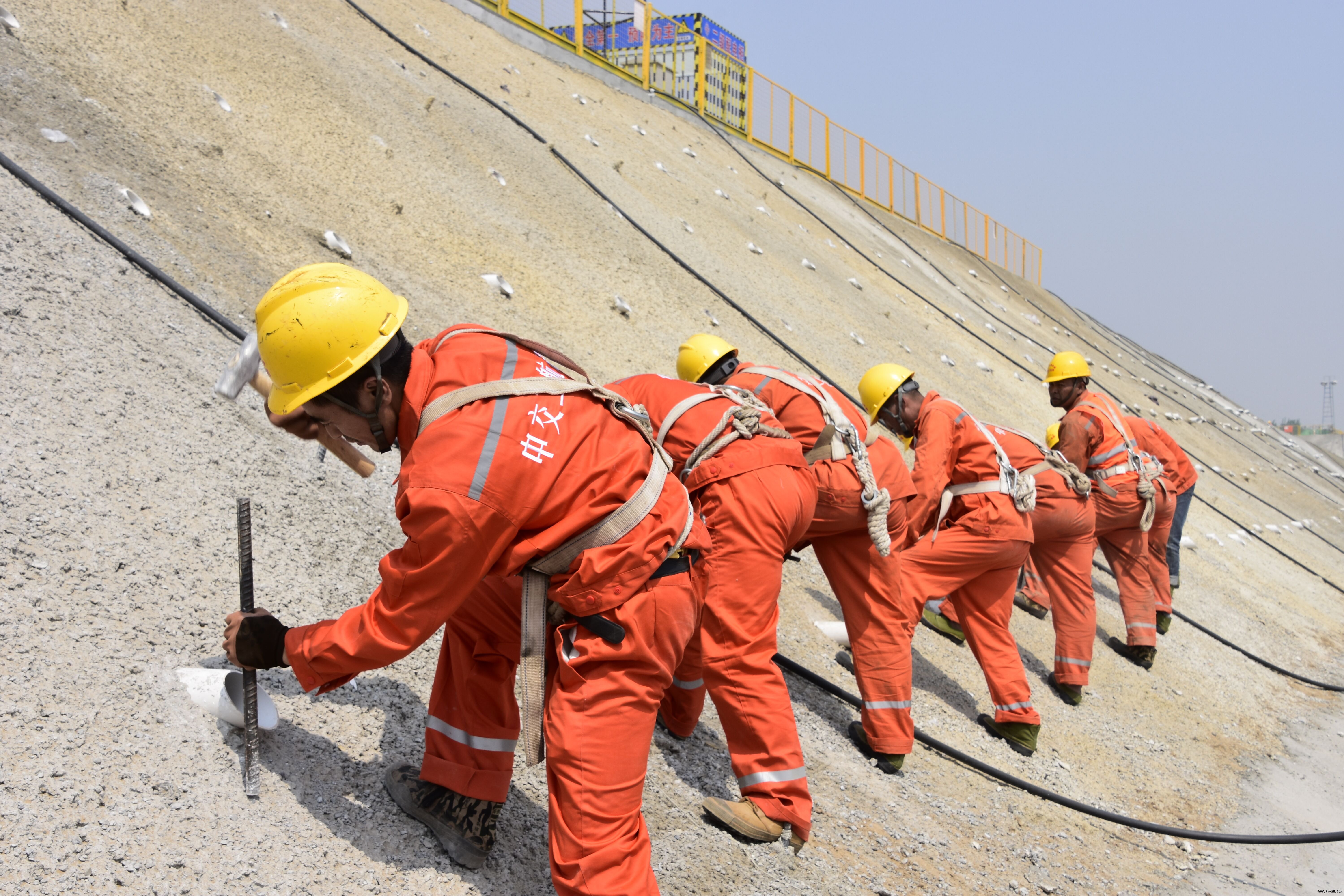 在现场,各道工序交叉作业,有条不紊。有的在放坡开挖、外运土方,有的在进行钻孔作业,有的在进行一级坡钢筋网片焊接。大家既分又合,呈现出一派热火的大干场面。